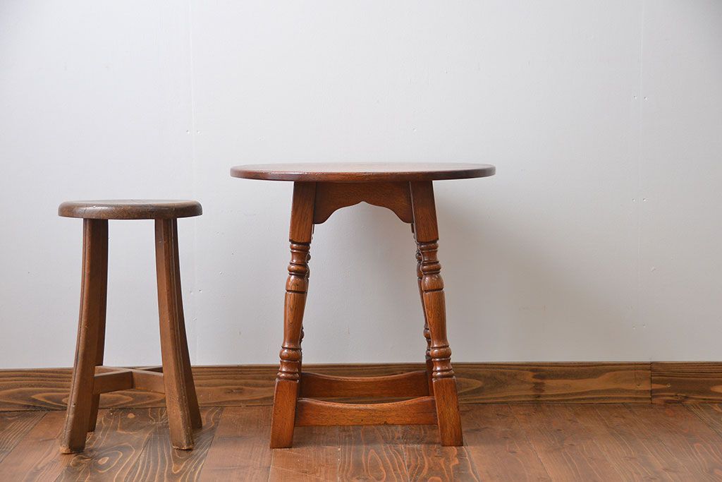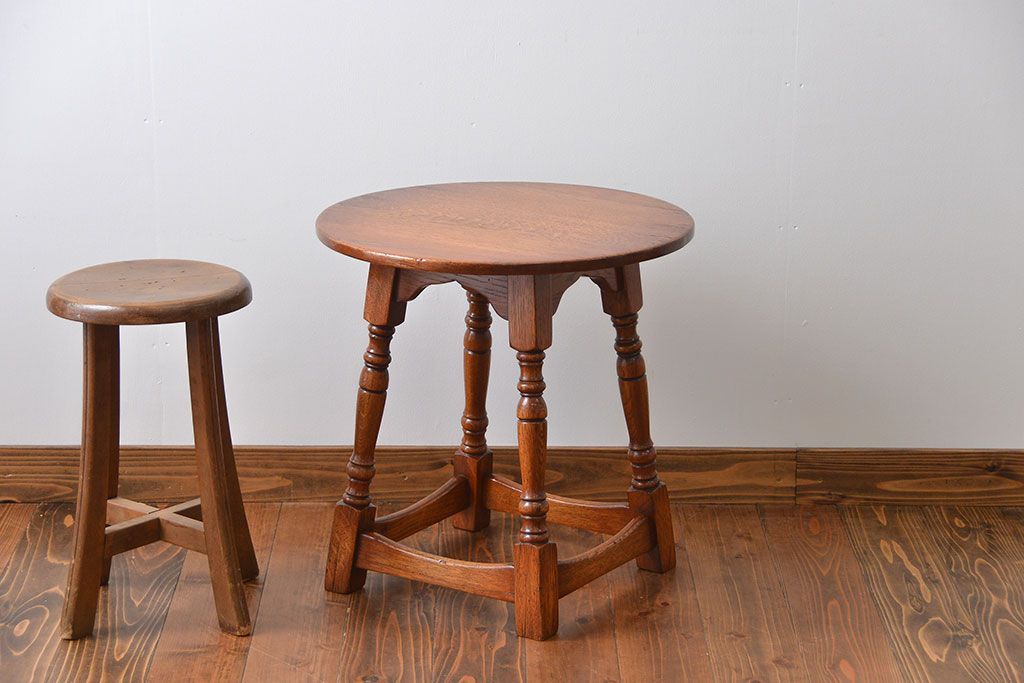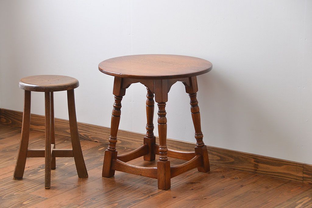 アンティーク家具 イギリスアンティーク オーク材 小さな丸テーブル