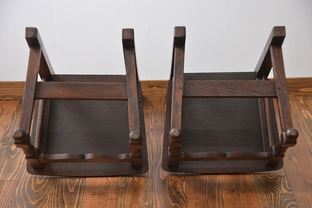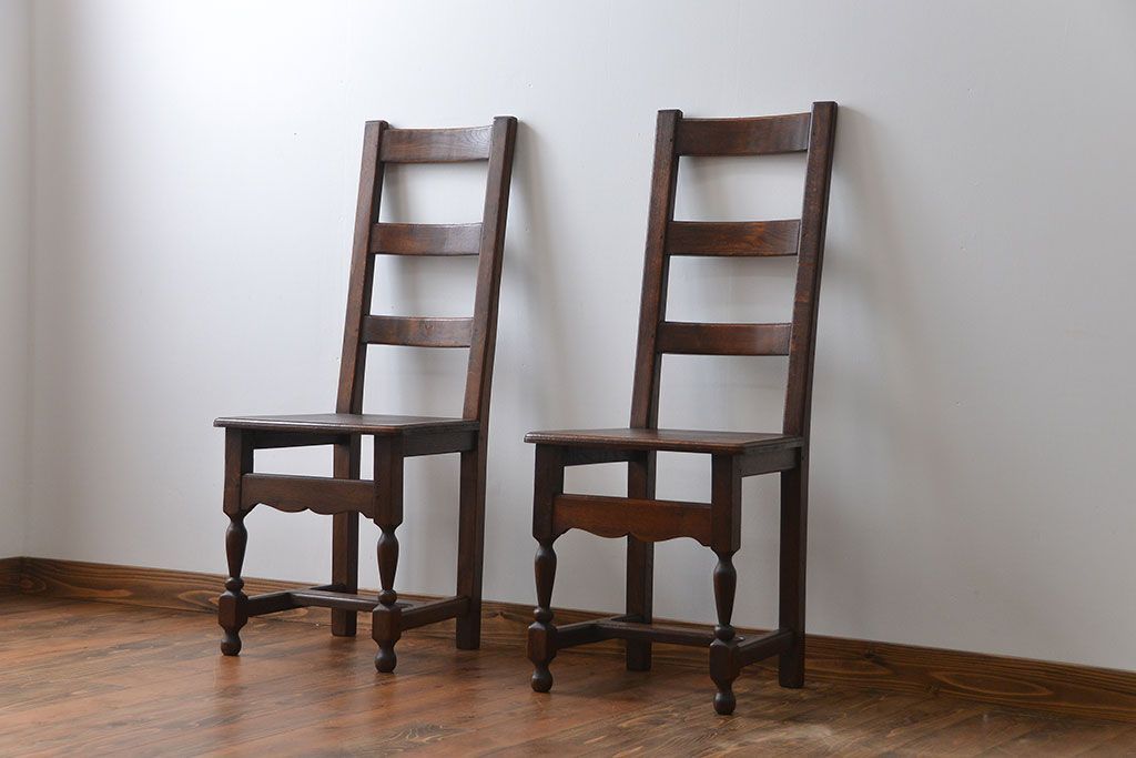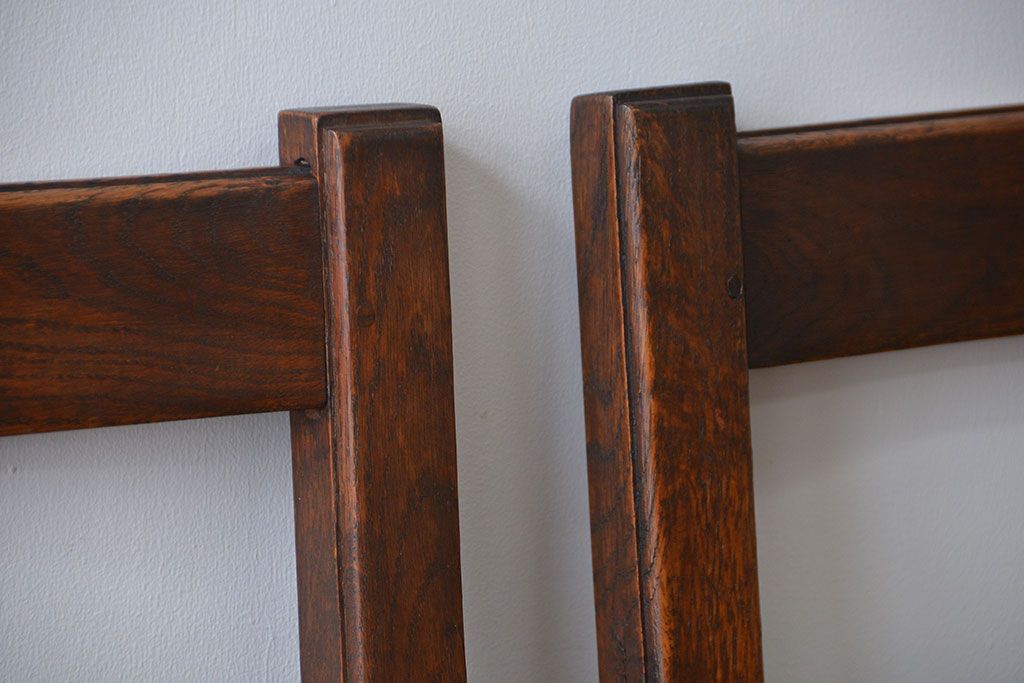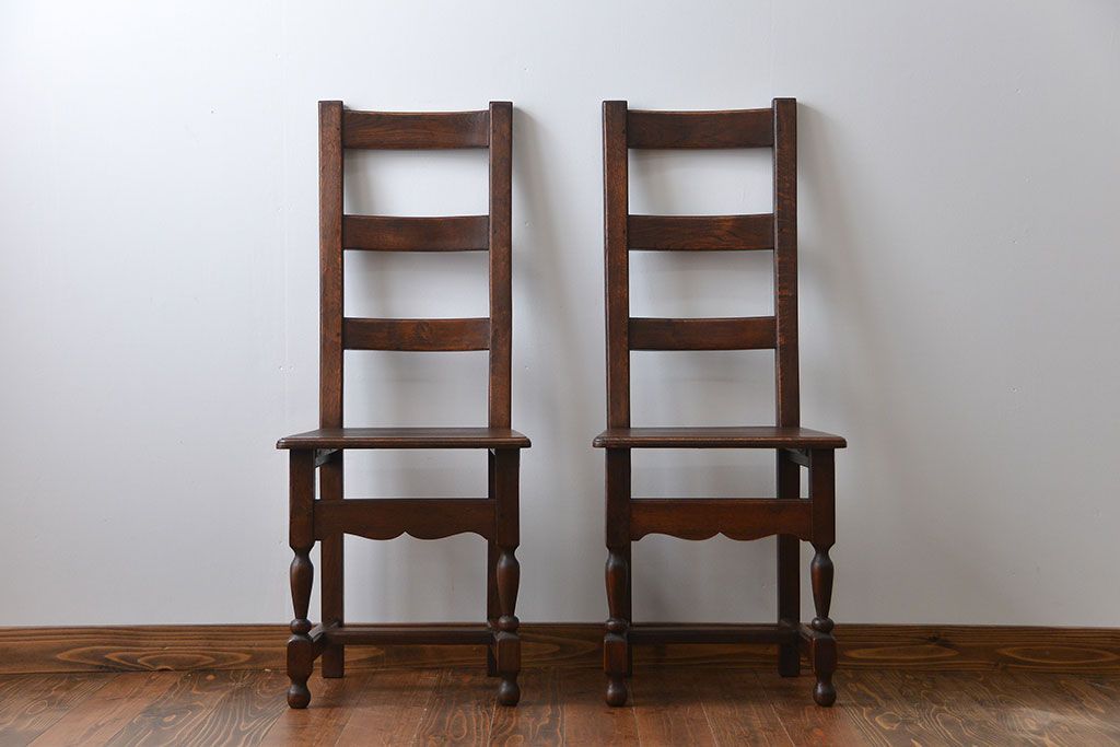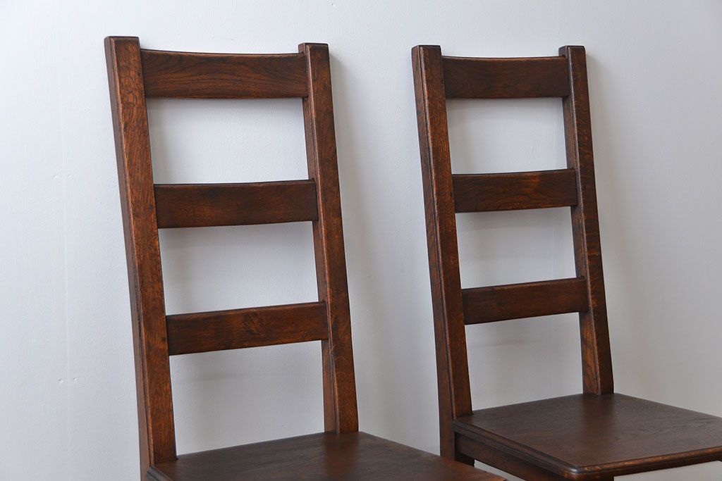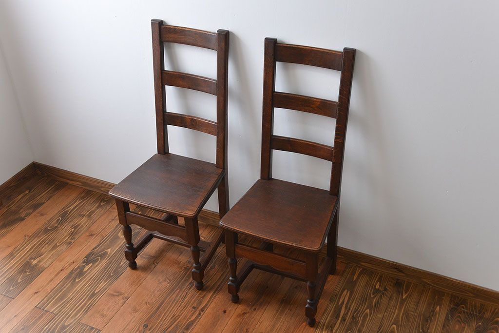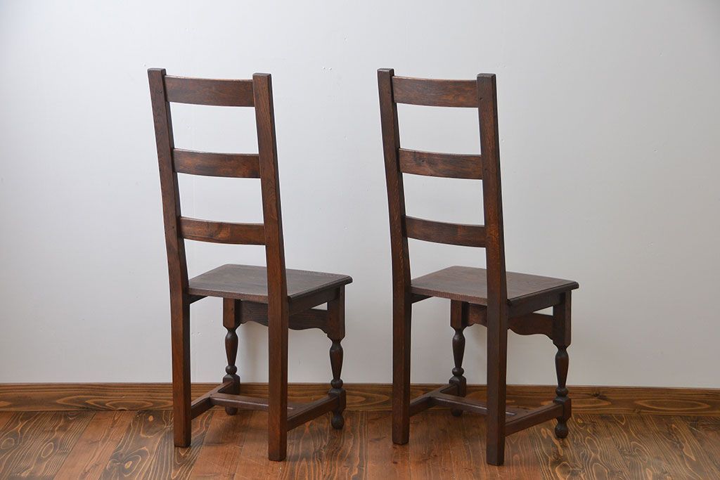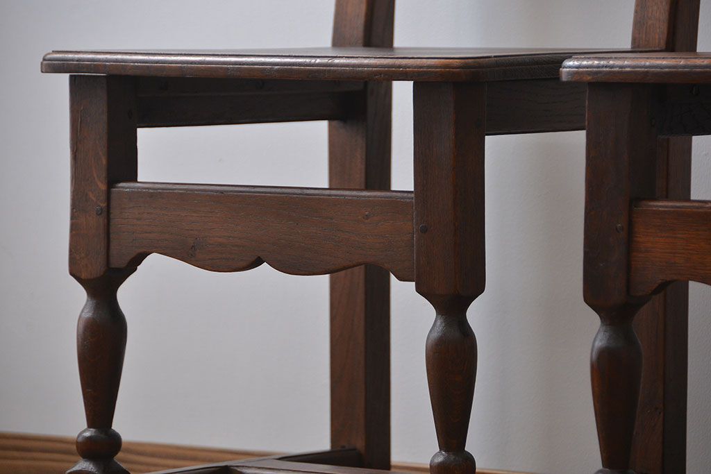 アンティーク家具 イギリスアンティーク オーク材 シックなダイニングチェア2脚セット(1)