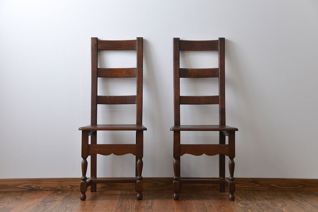アンティーク家具 イギリスアンティーク オーク材 シックなダイニングチェア(3)