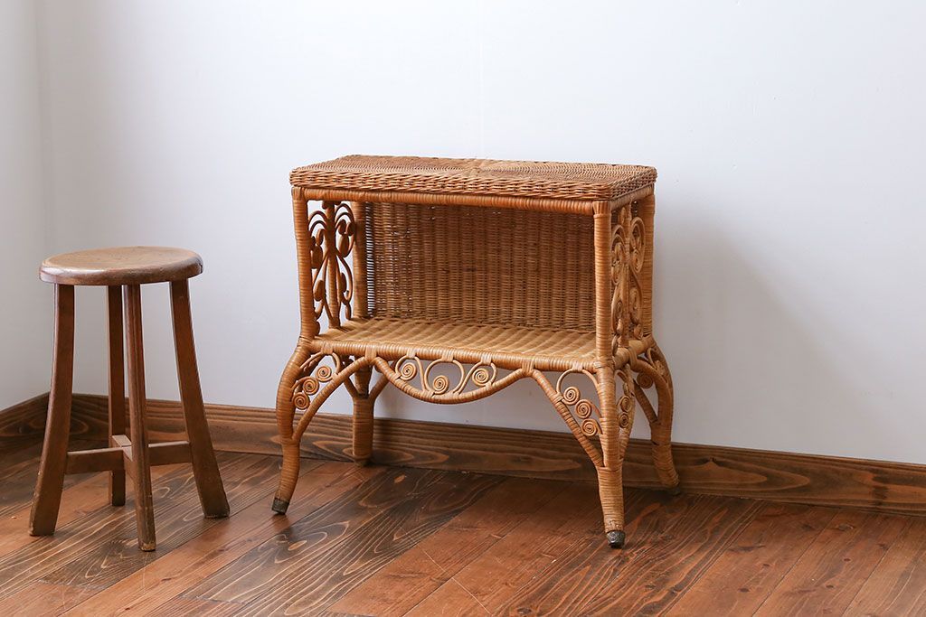 アンティーク家具 イギリスアンティーク トウ(籐)でできたサイドテーブル