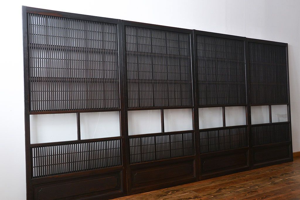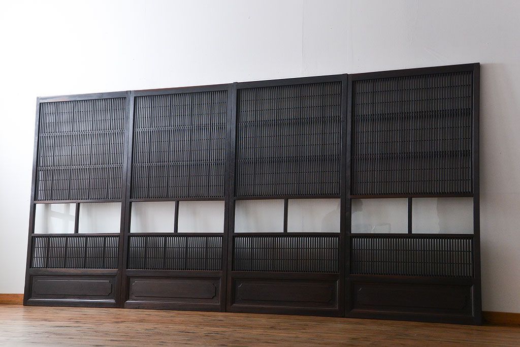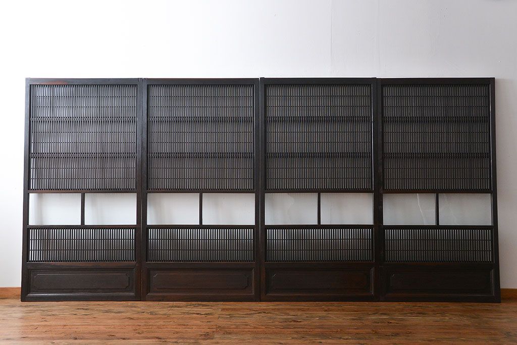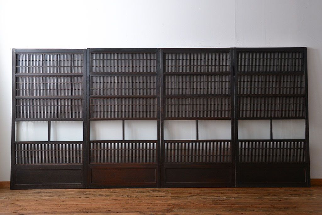 古民具・骨董 シックな裏障子付き格子戸4枚セット(2)