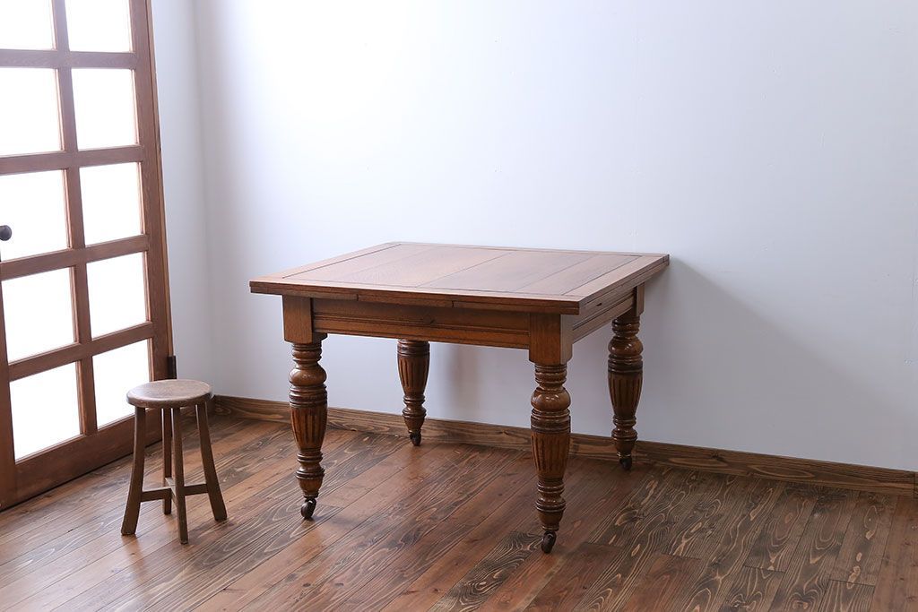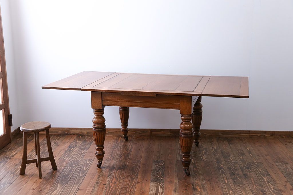 アンティーク家具 イギリスアンティーク オーク材 ドローリーフテーブル