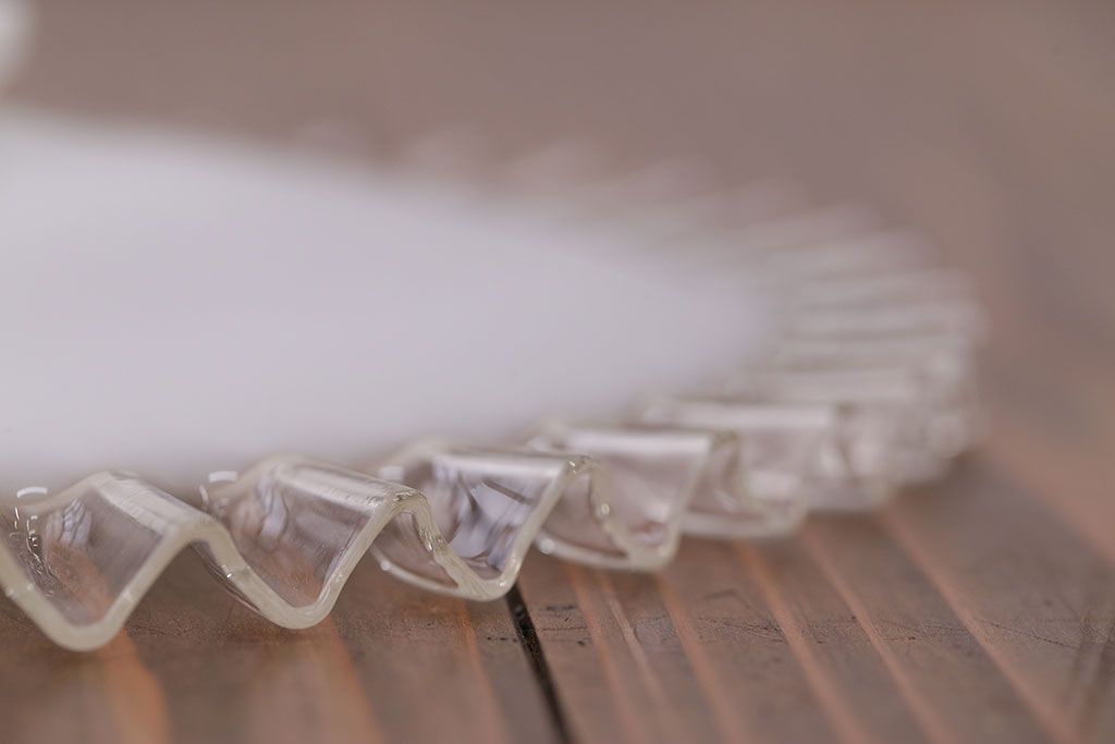 フリル型になっている、透明な部分が光を受けて輝くのがとても綺麗です。