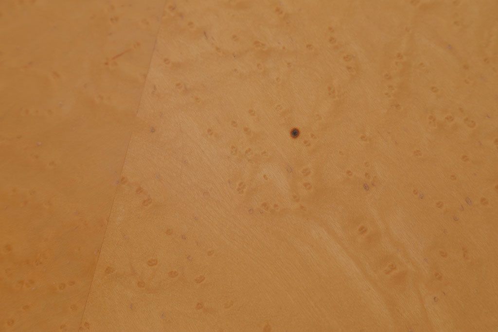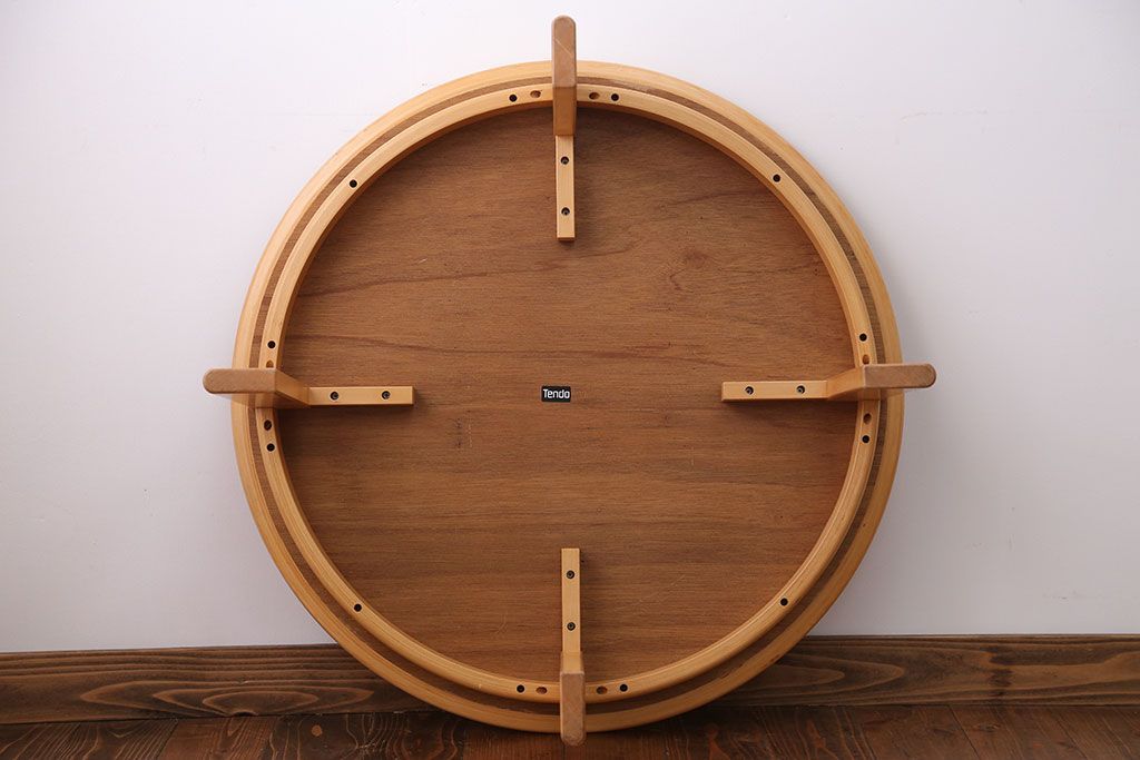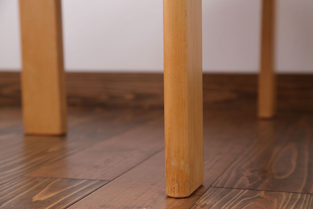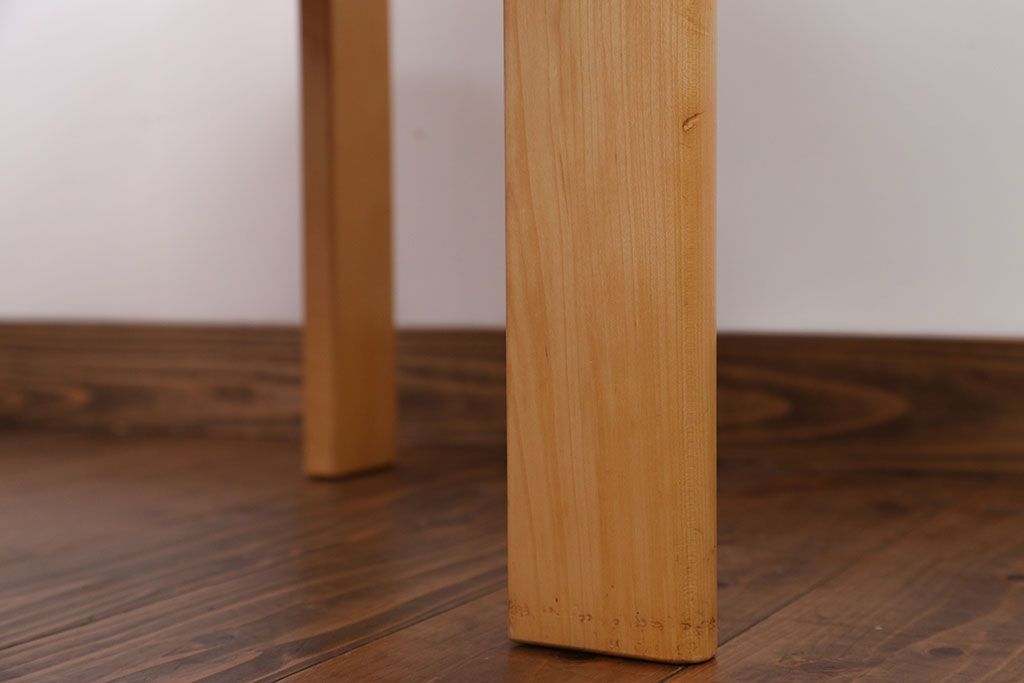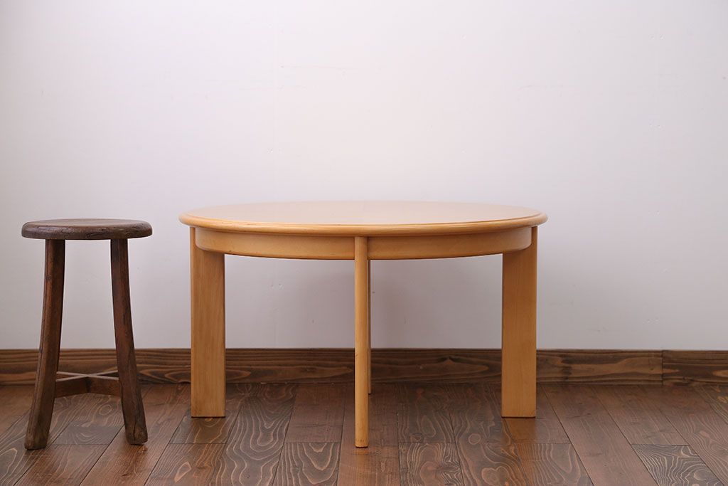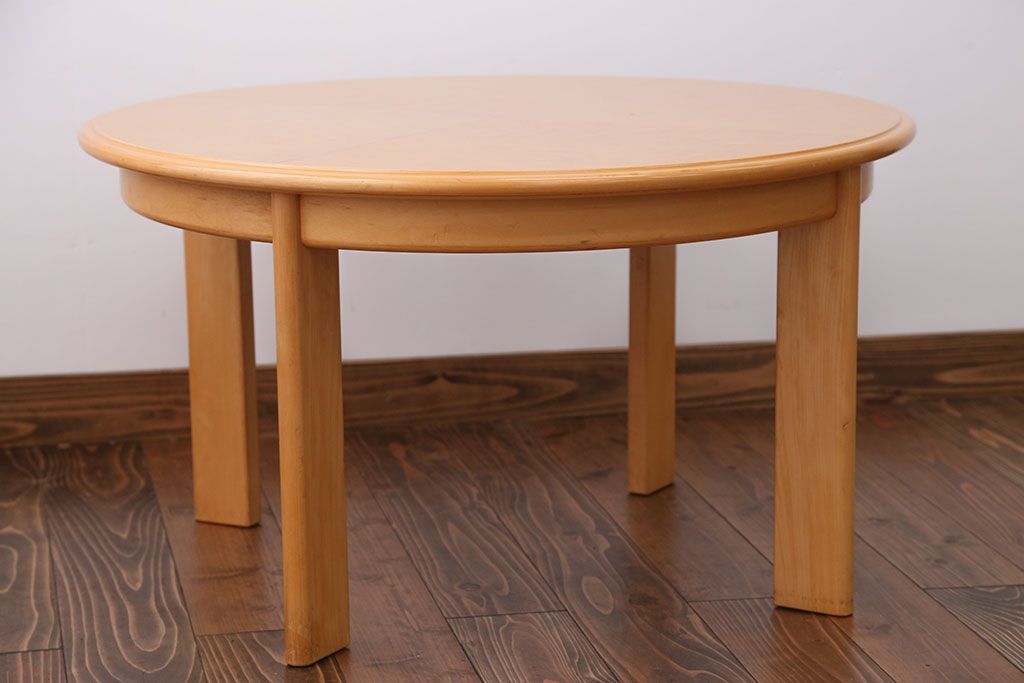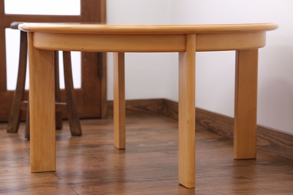 天板の杢目が鳥眼杢(バーズアイ)になっている、美しい丸テーブルです。
