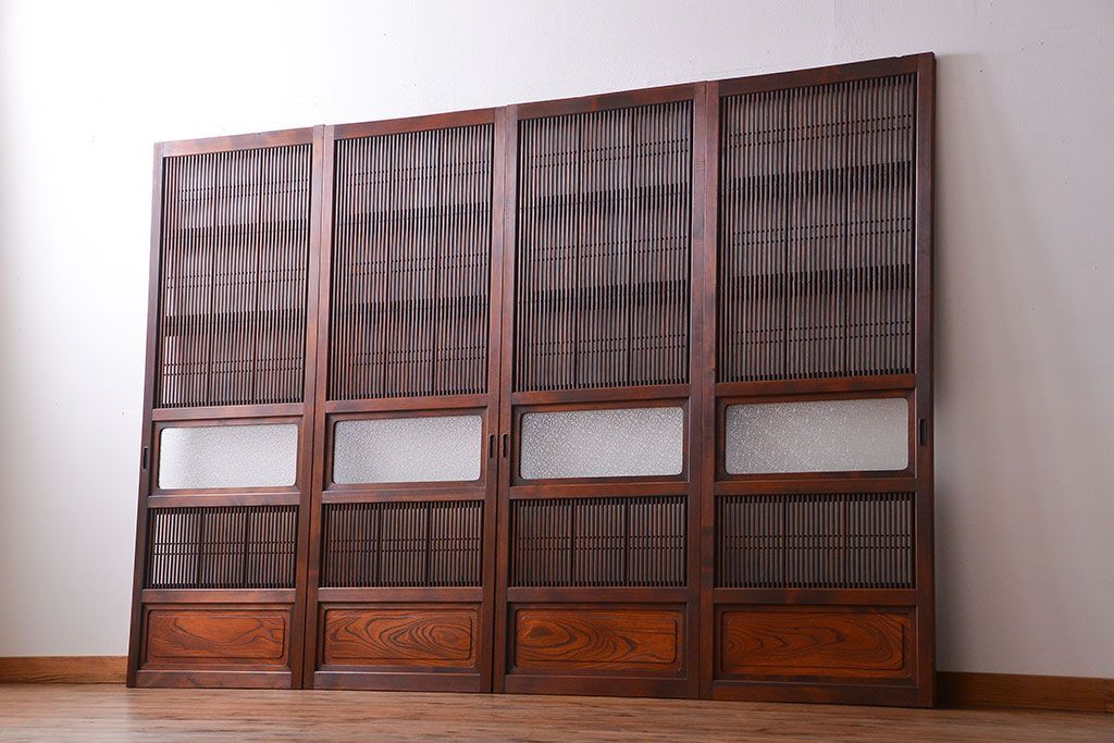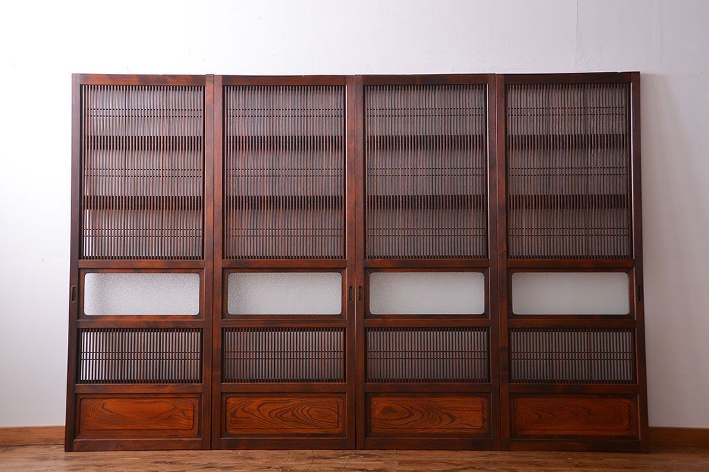 腰板欅材!裏障子付き幅の狭い格子戸4枚セットです。