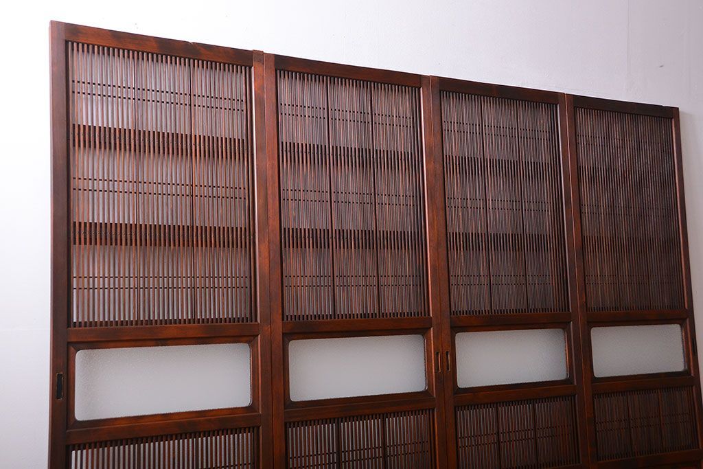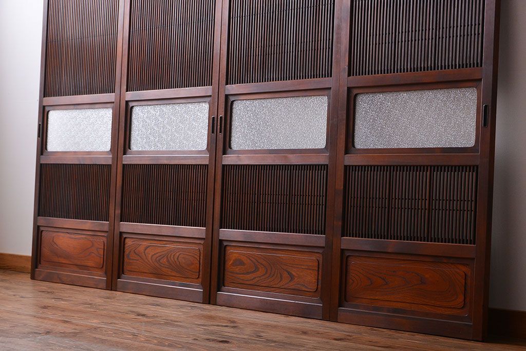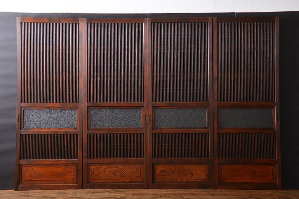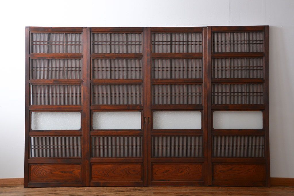 腰板欅材!裏障子付き幅の狭い格子戸4枚セット