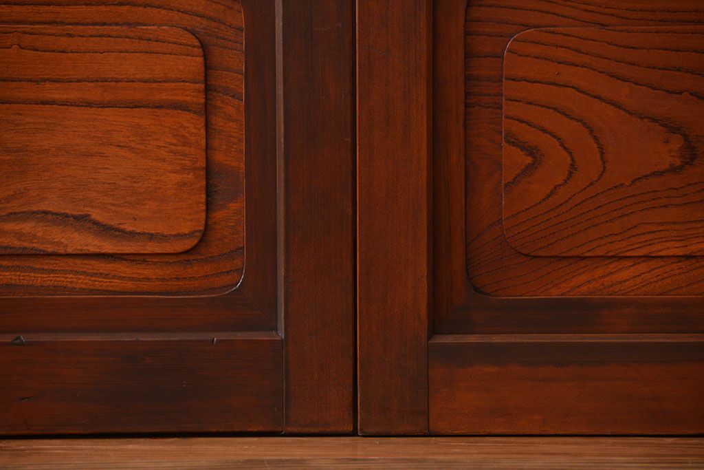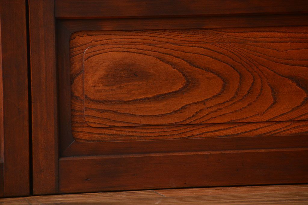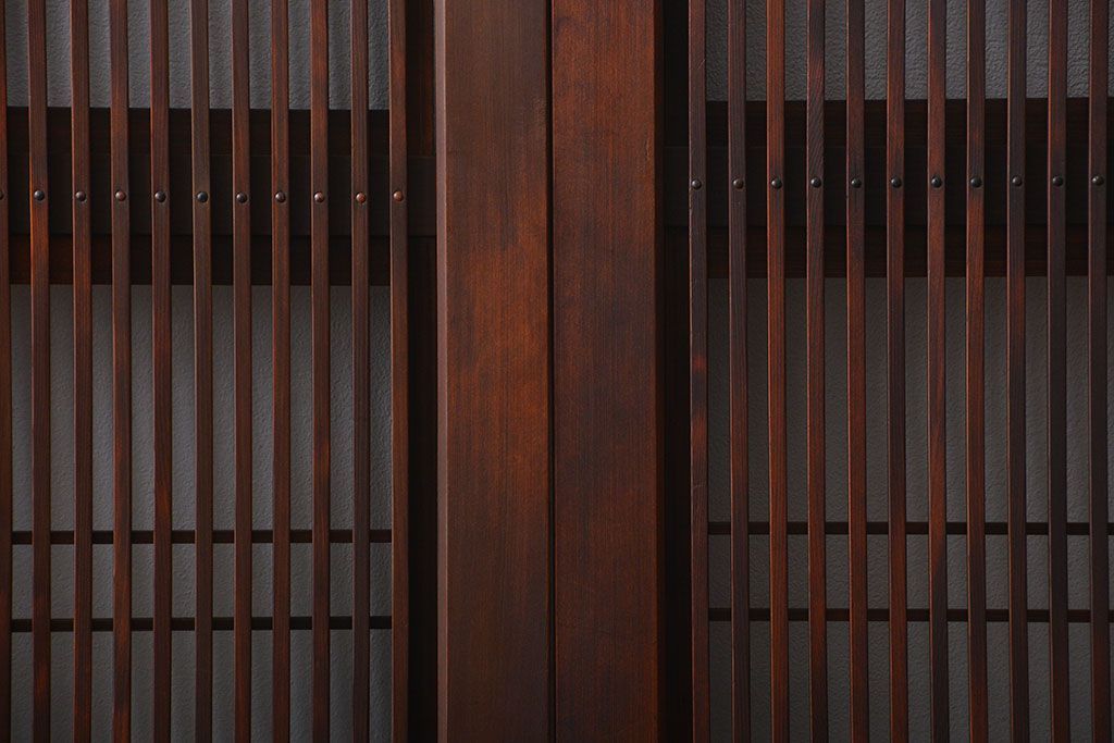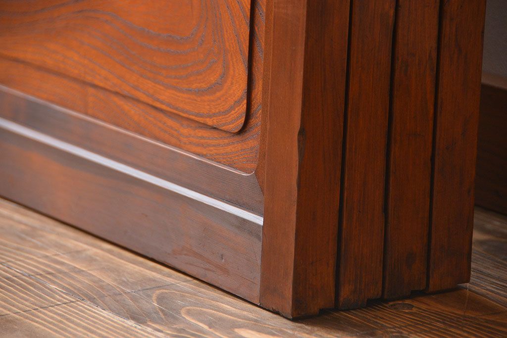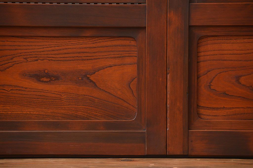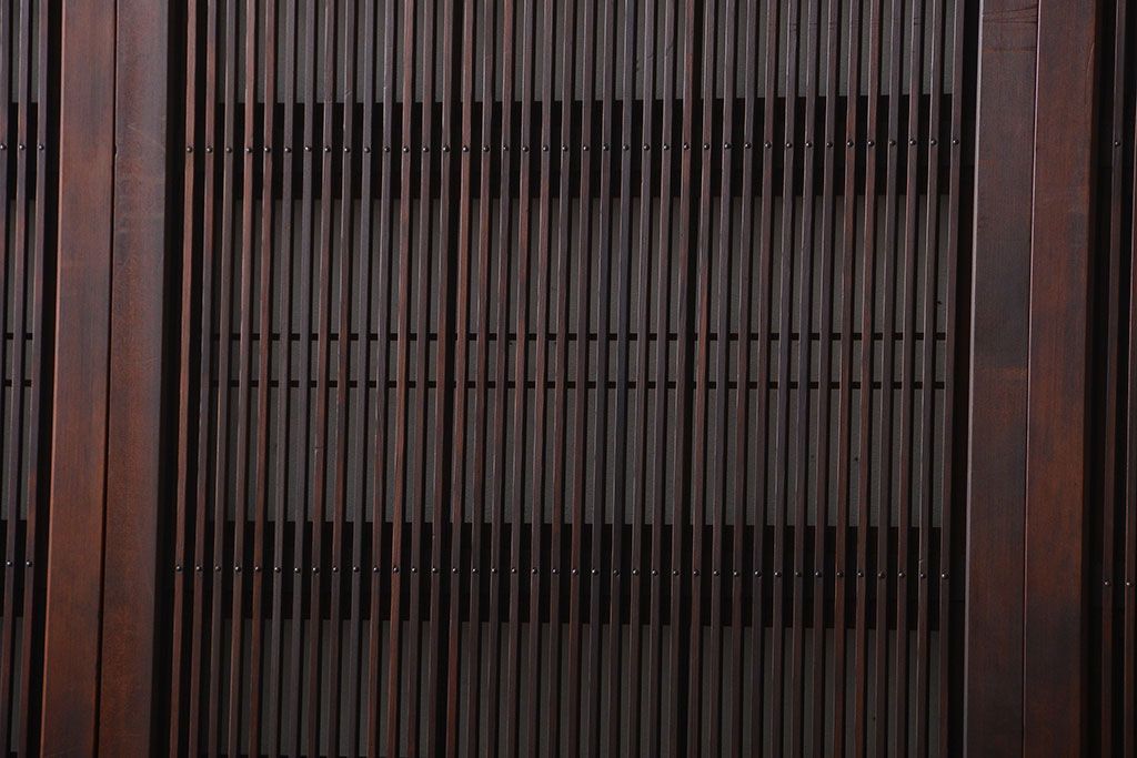 腰板のケヤキ材の木目が美しい、格子戸です。
