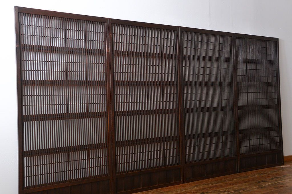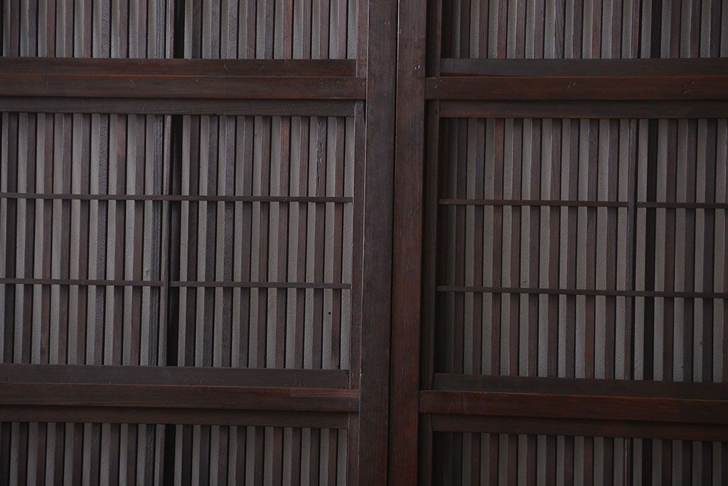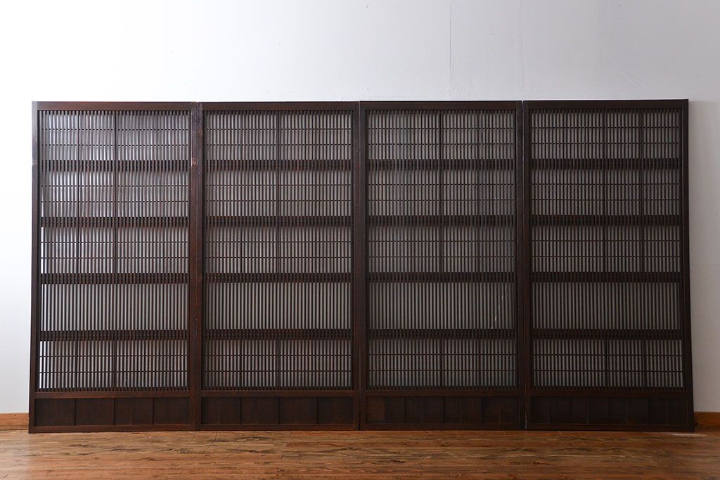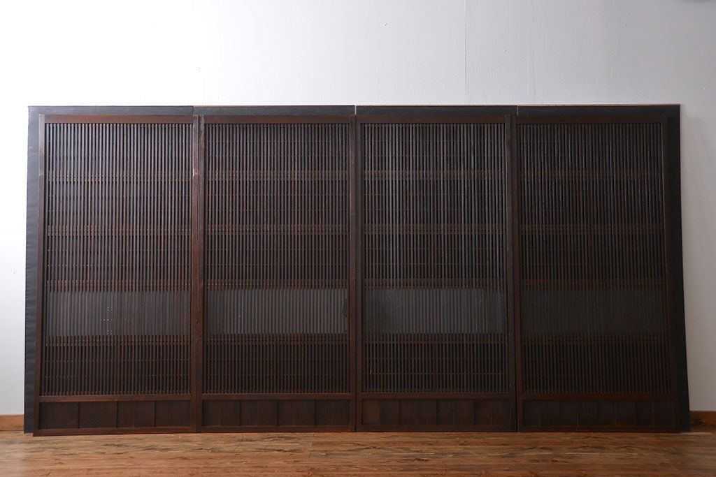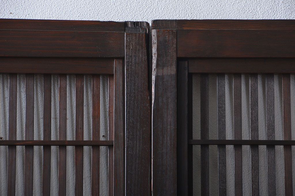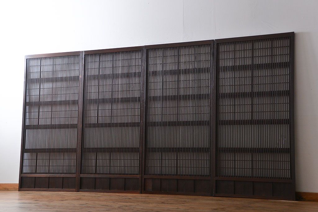 使い込まれた質感が味がある、格子戸4枚セットです。