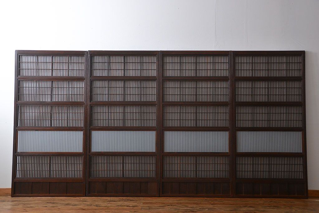古民具・骨董 裏障子、裏ガラス付き格子戸4枚