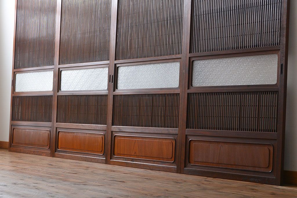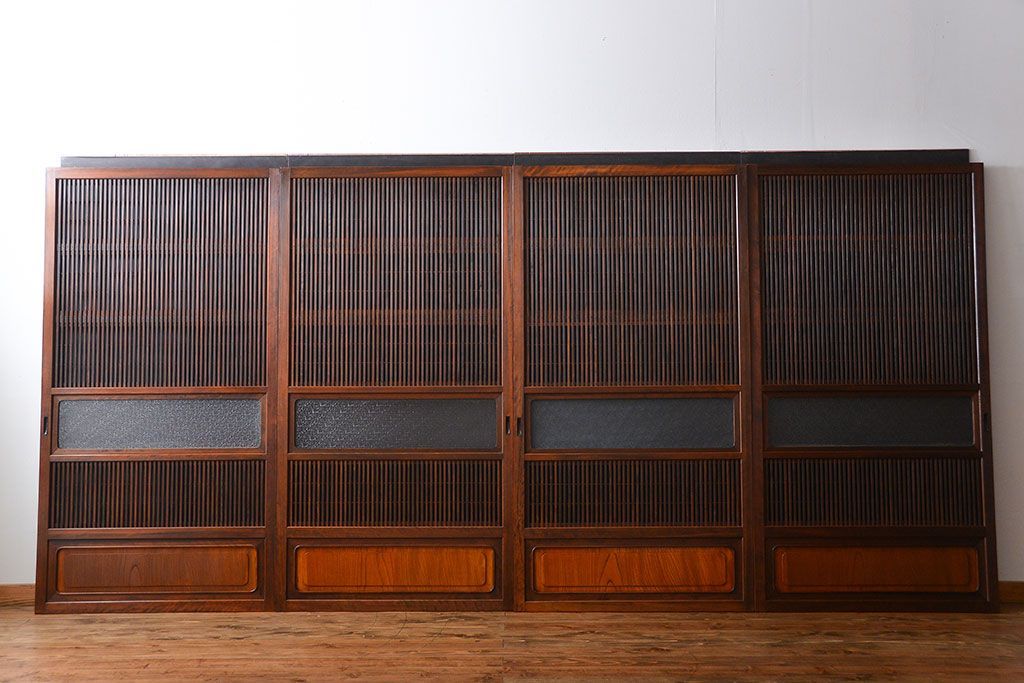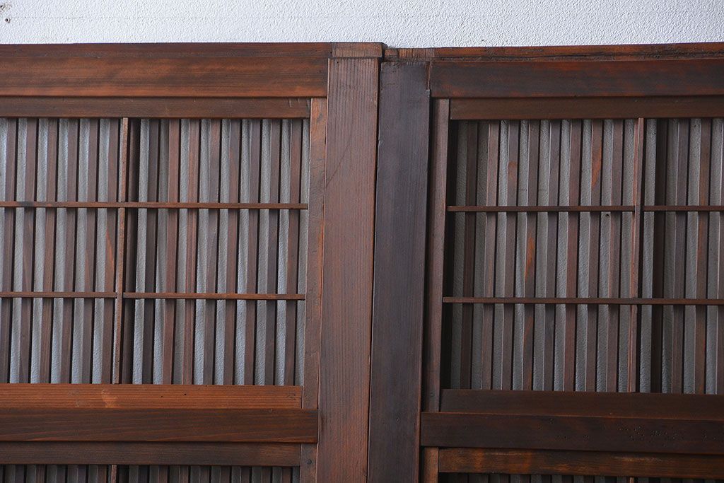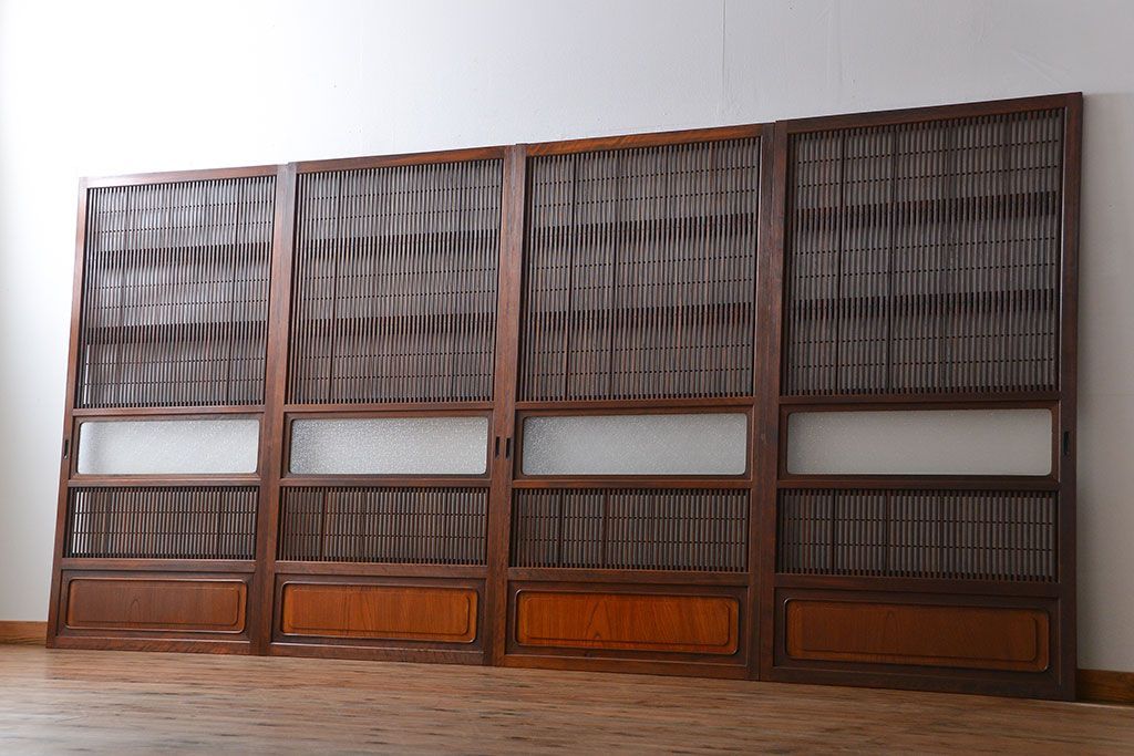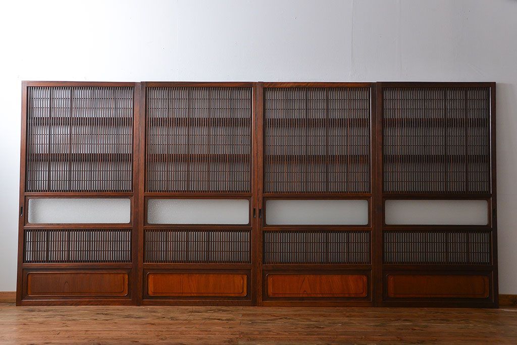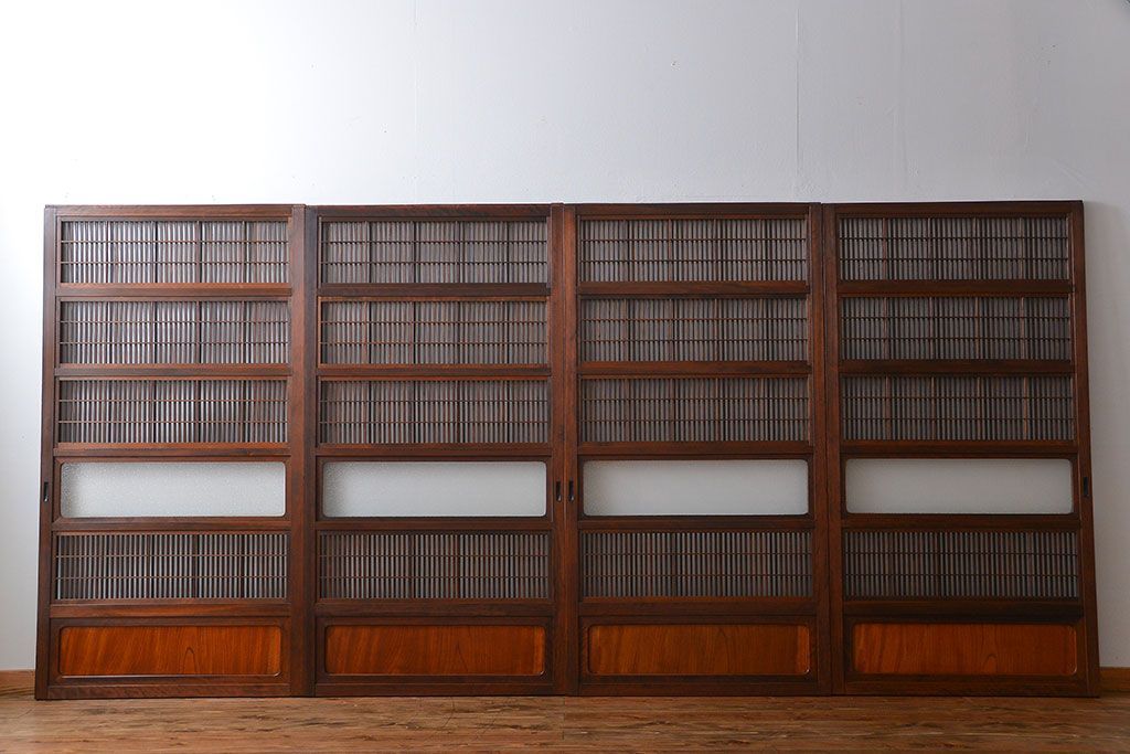 腰板欅材!裏障子付き上質な格子戸4枚セットです。