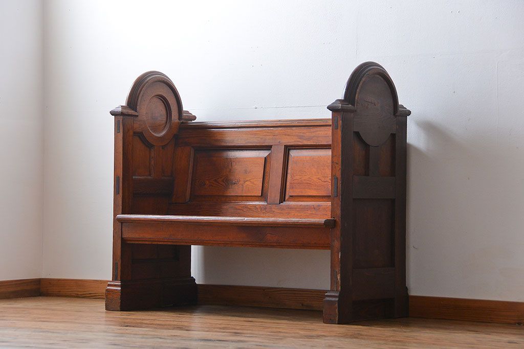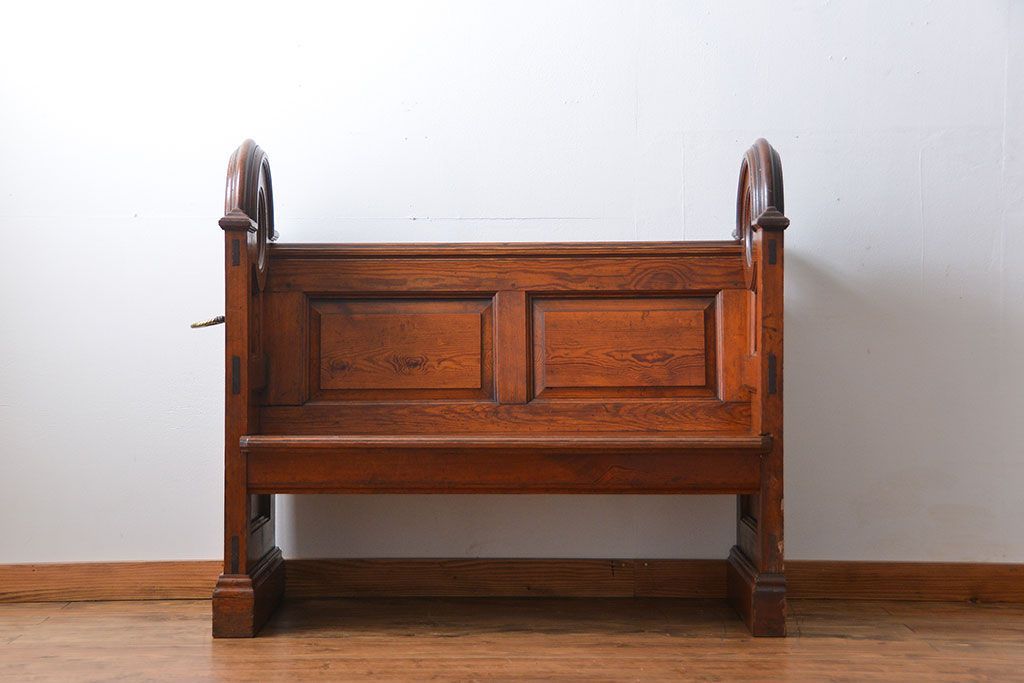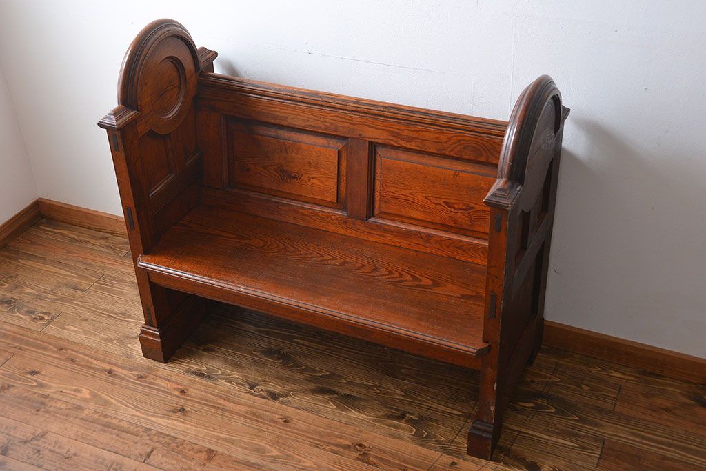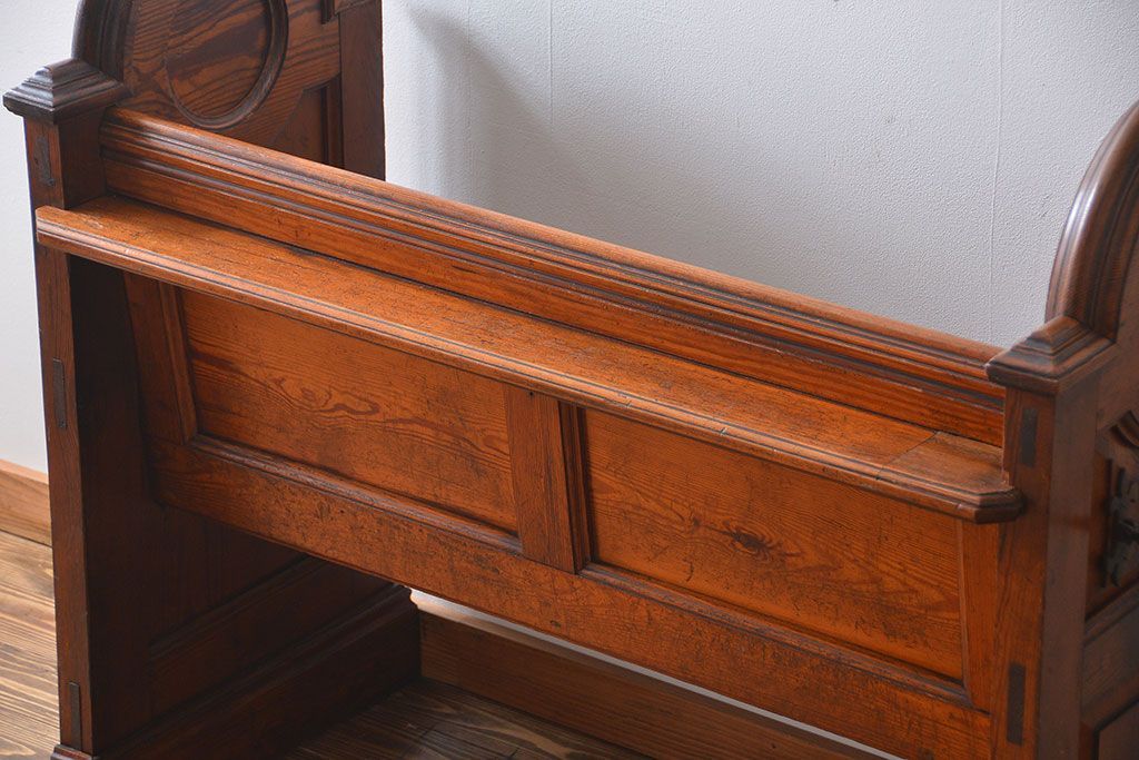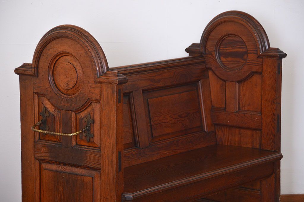 アンティーク家具 イギリスアンティーク パイン材のチャーチベンチ