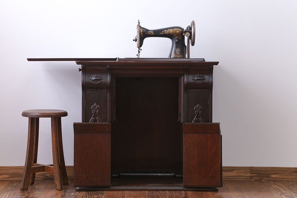 美しい彫刻が施された最上位モデルのエリザベスシンガーミシンです。