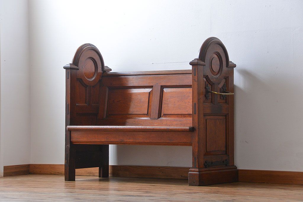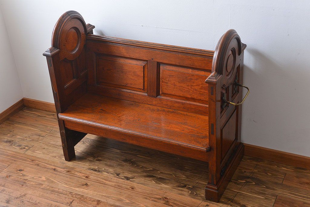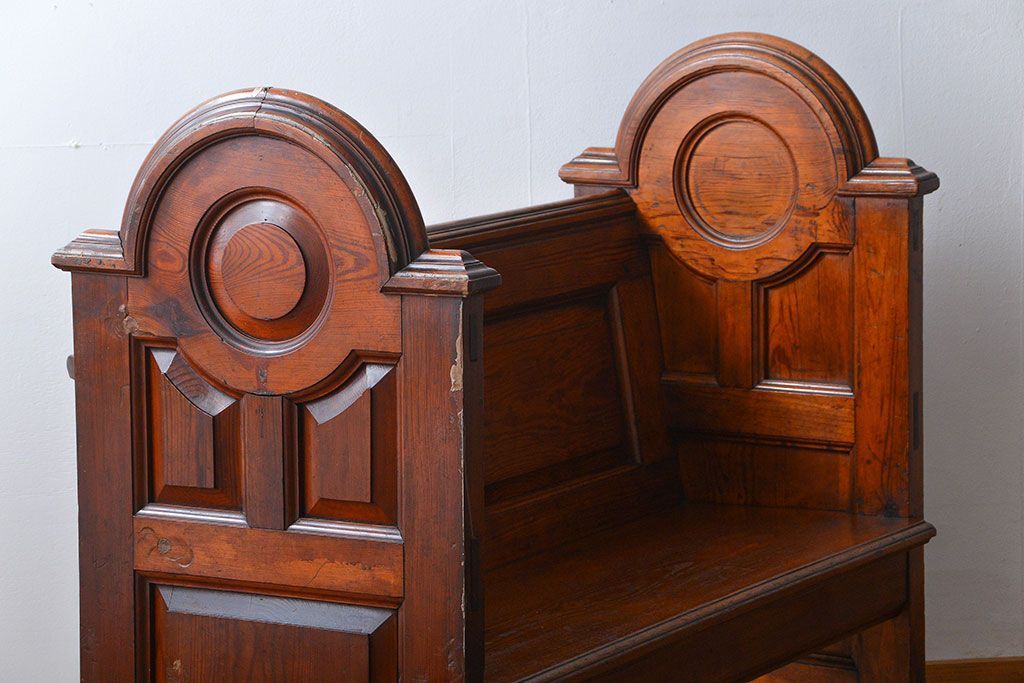 アンティーク家具 イギリスアンティーク パイン材のチャーチベンチ(3)