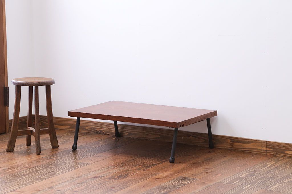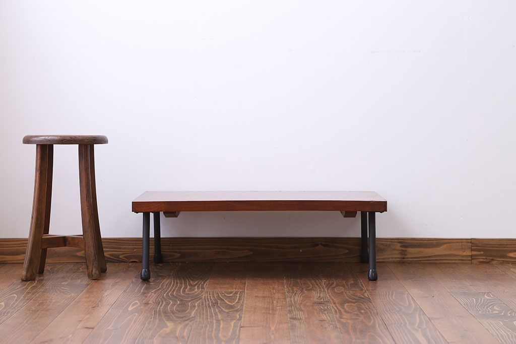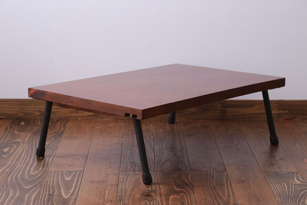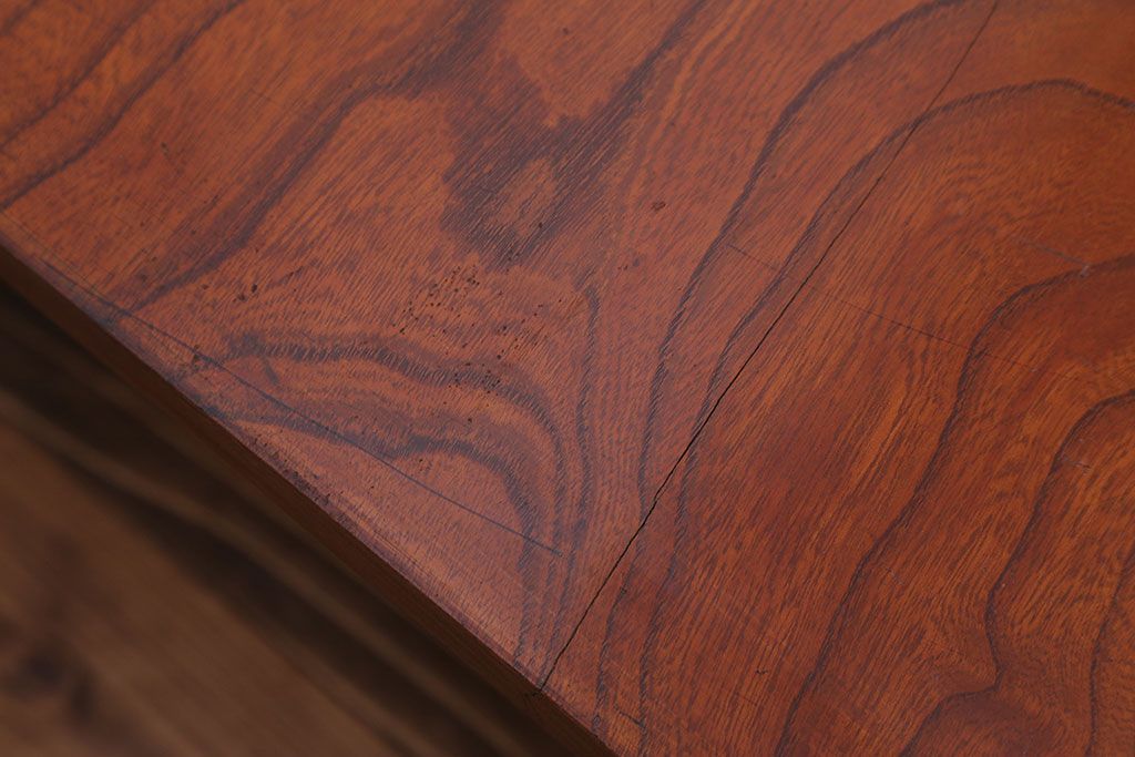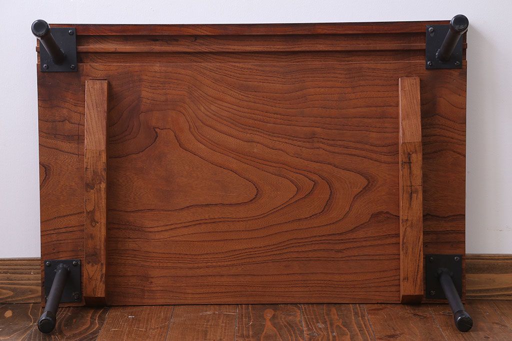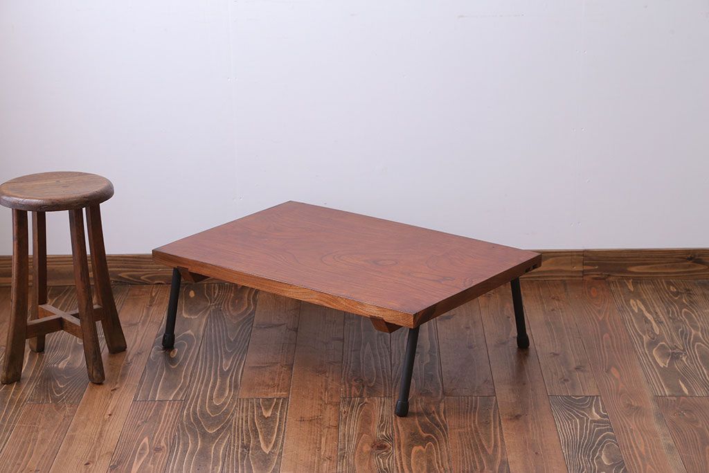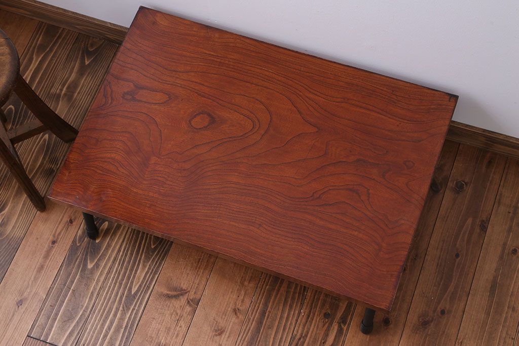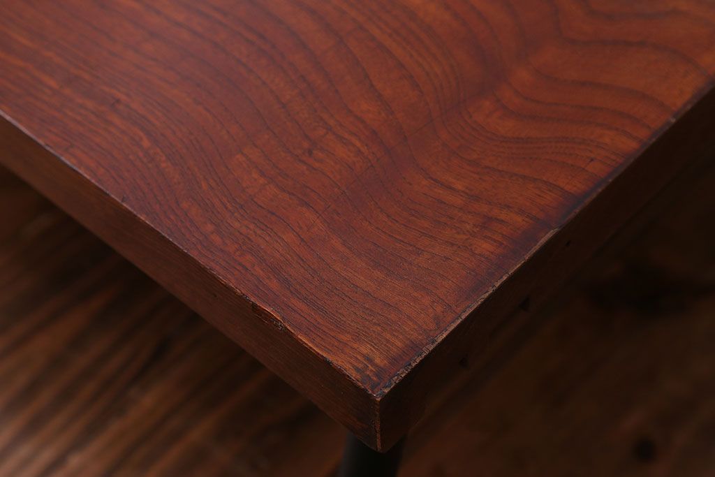 アンティーク家具 古い欅材 漆の綺麗な小さな鉄脚テーブル
