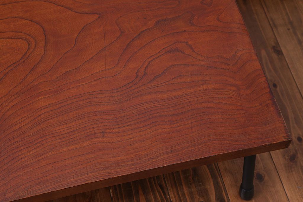 古い欅材 漆の綺麗な小さな鉄脚テーブルです。