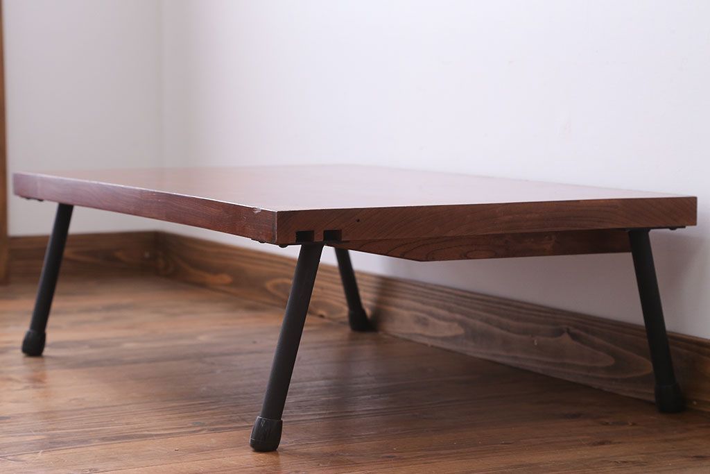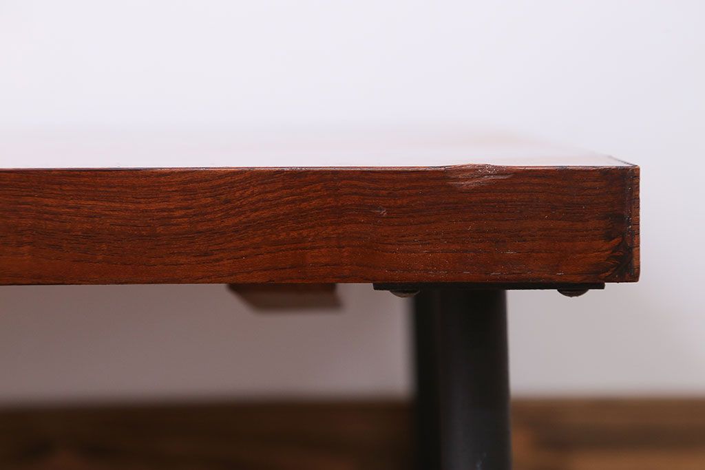 一枚板を贅沢に使用した天板の鉄脚テーブルです。