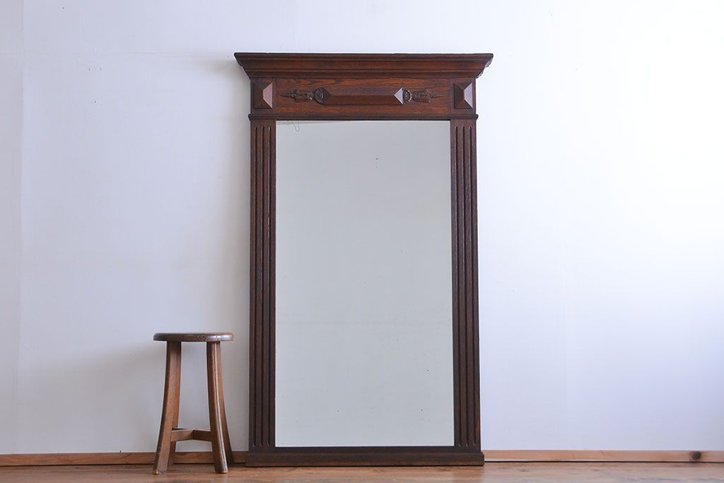 アンティーク雑貨 イギリスアンティーク オーク材!美しい姿見(ミラー)