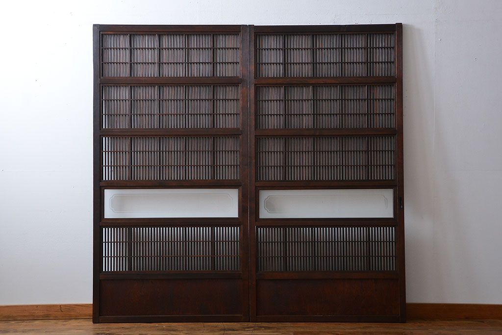 モダンなガラス入りの格子戸2枚セットです。