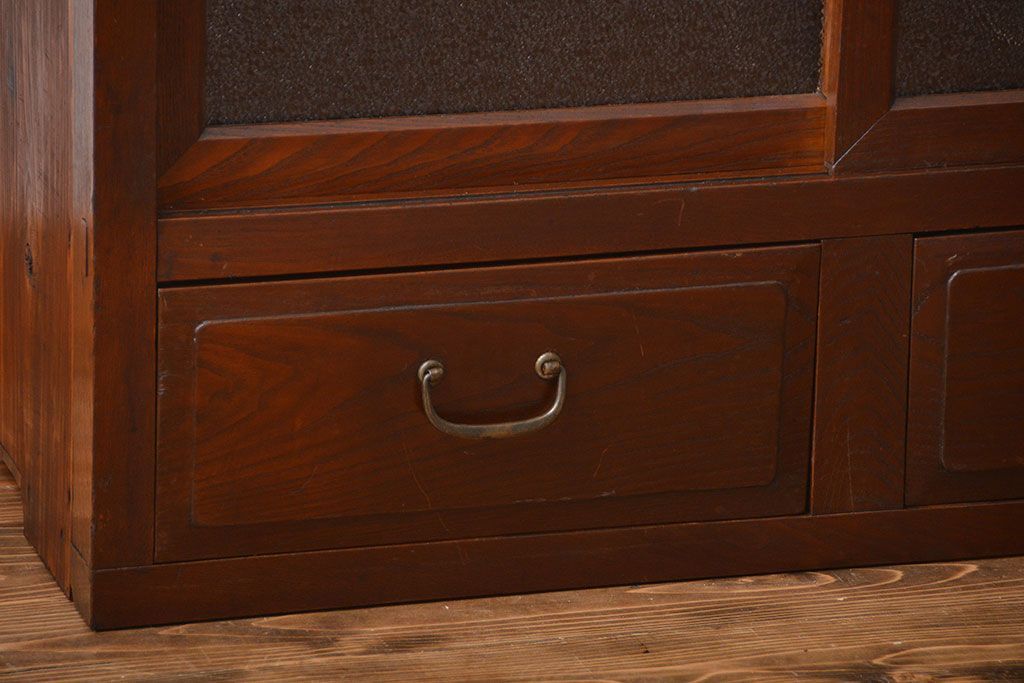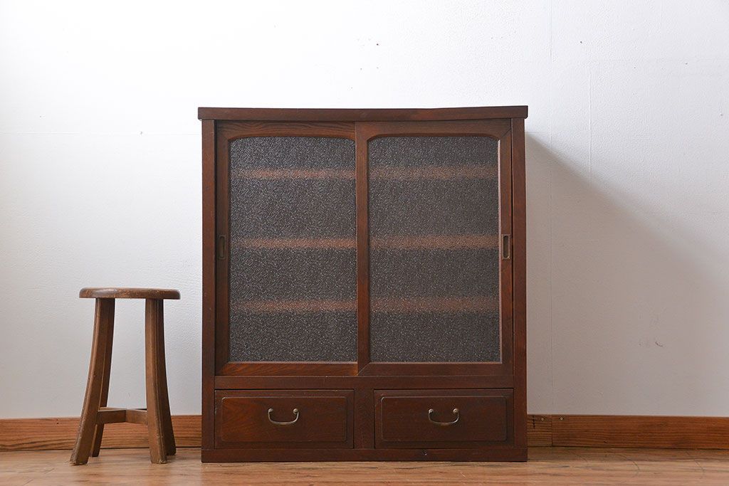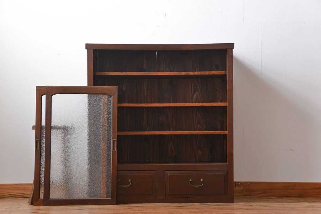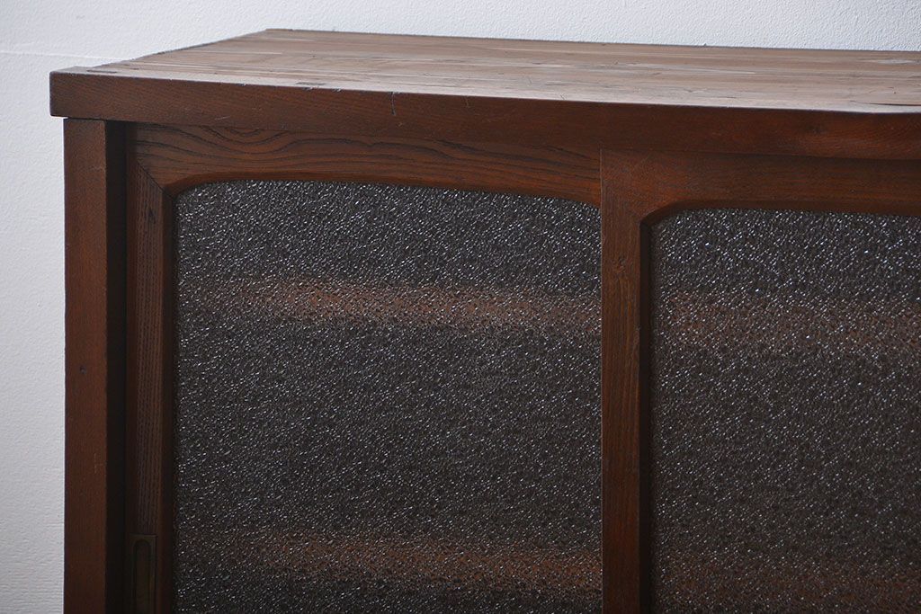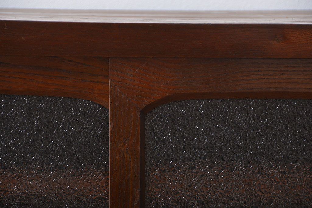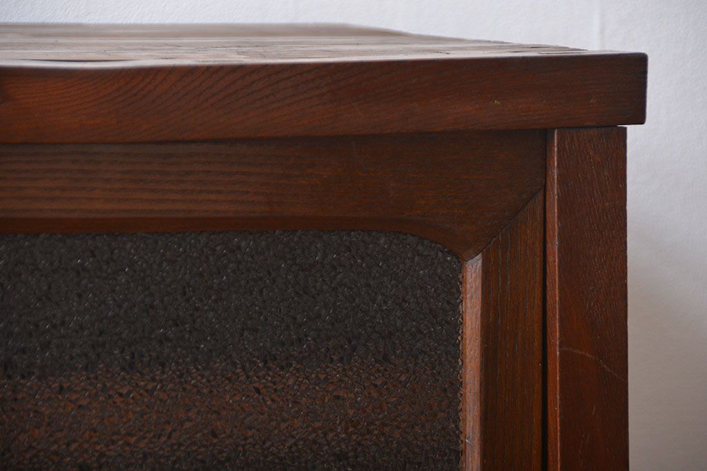 レトロ家具 昭和レトロ 前面栗材 ダイヤガラス入り収納棚(2)