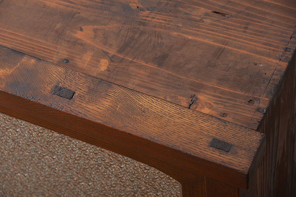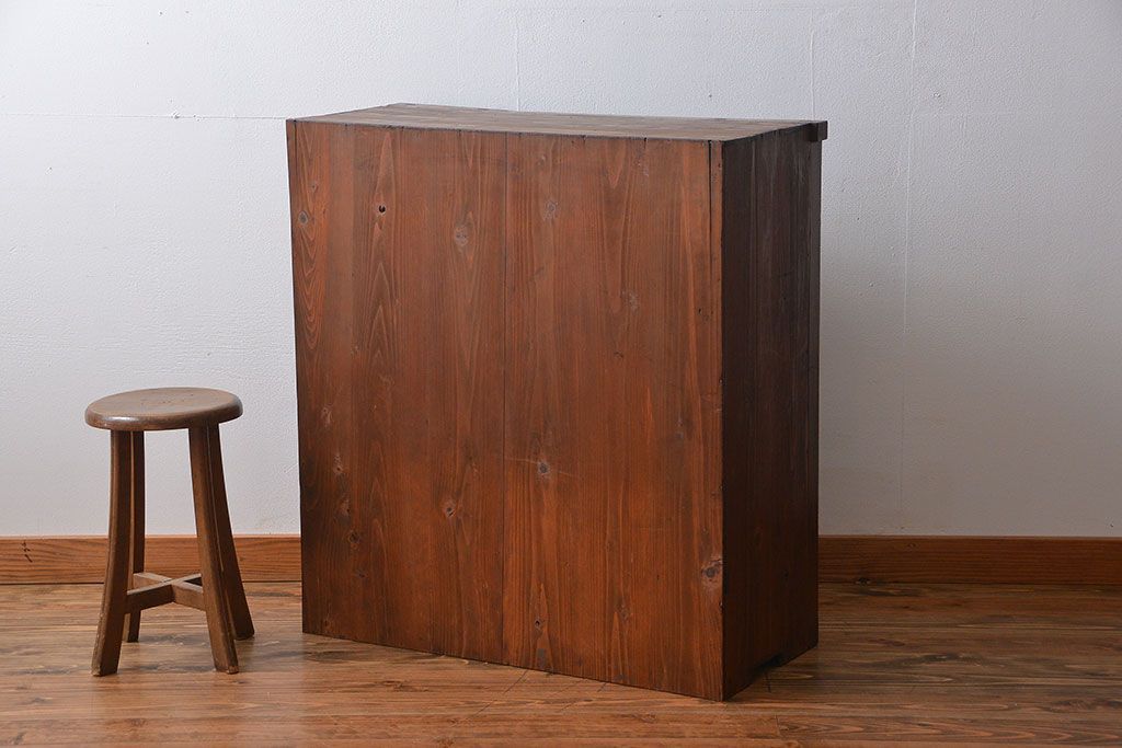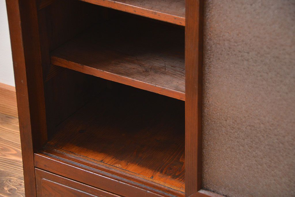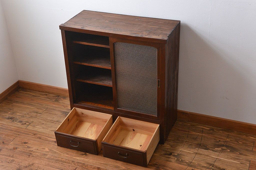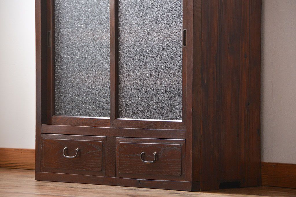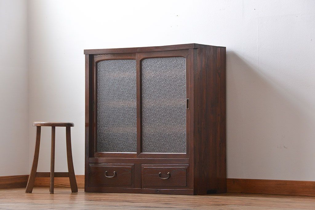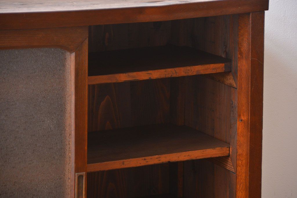 レトロ家具 昭和レトロ 前面栗材 ダイヤガラス入り収納棚(2)