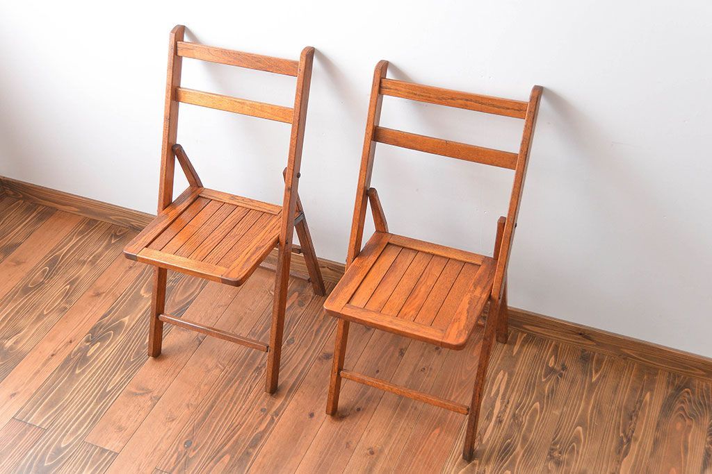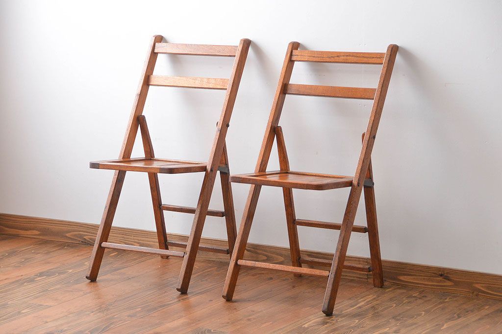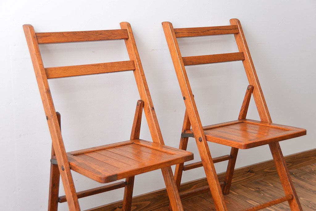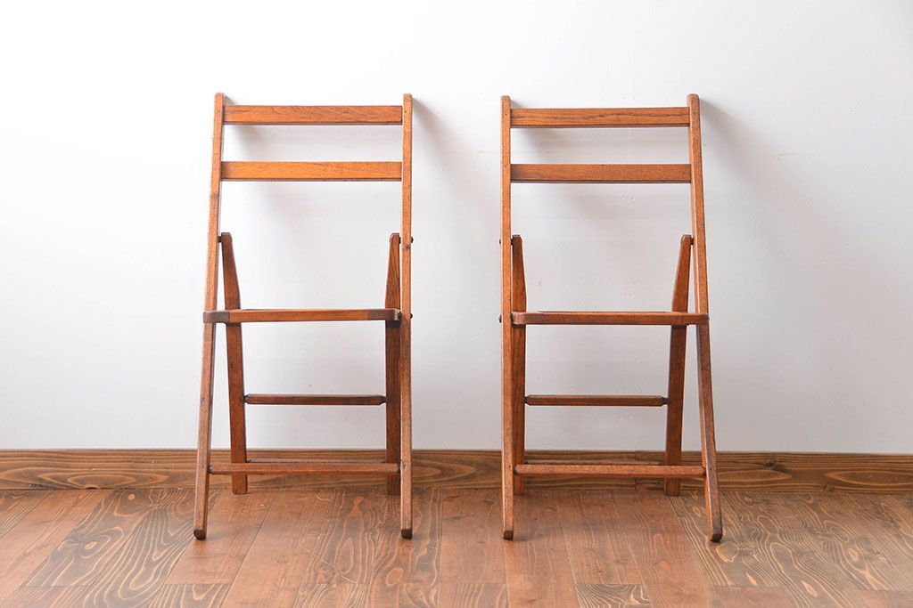 アンティーク家具 イギリスアンティーク フォールディングチェア2脚セット(1)