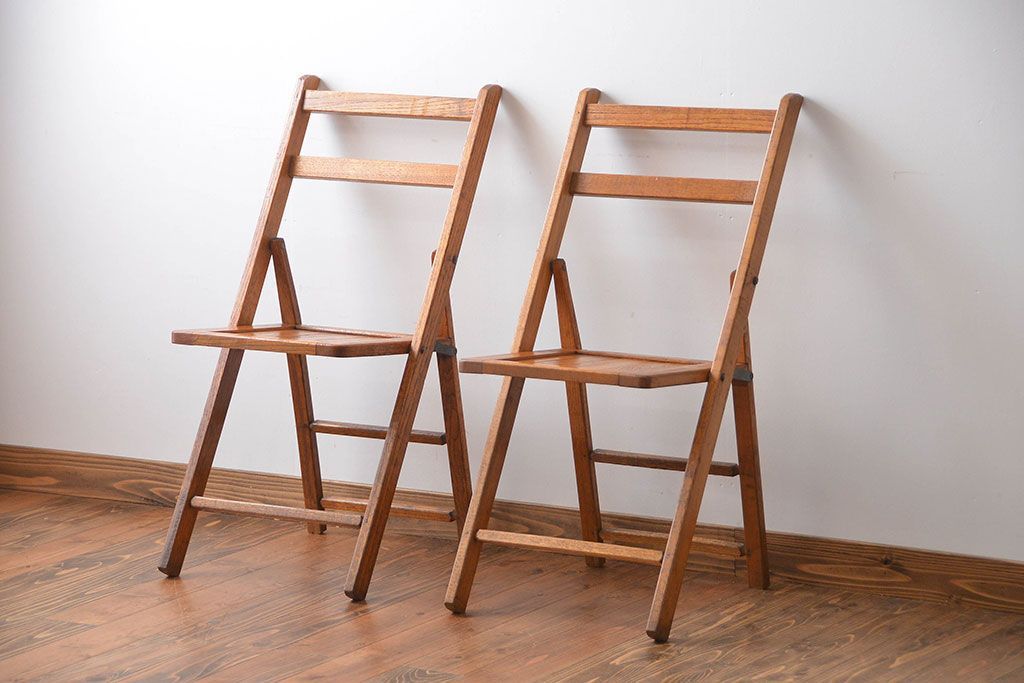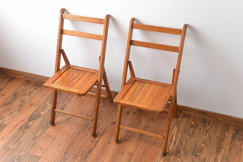 アンティーク家具 イギリスアンティーク フォールディングチェア2脚セット(2)