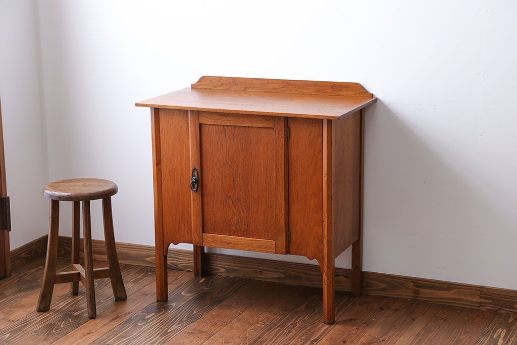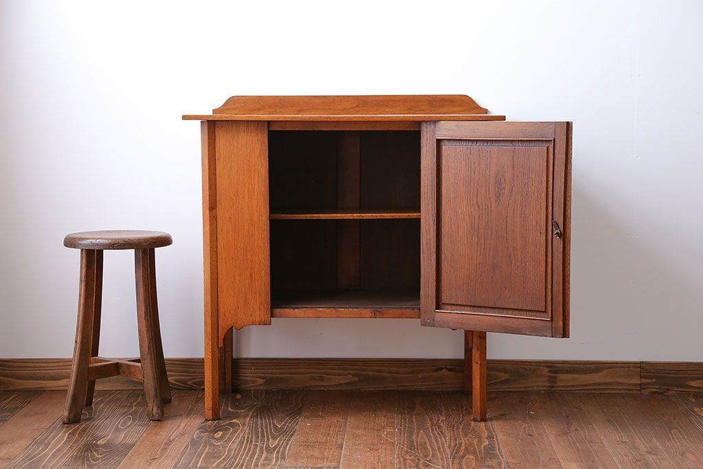 アンティーク家具 イギリスアンティーク オーク材 シンプルなサイドキャビネット