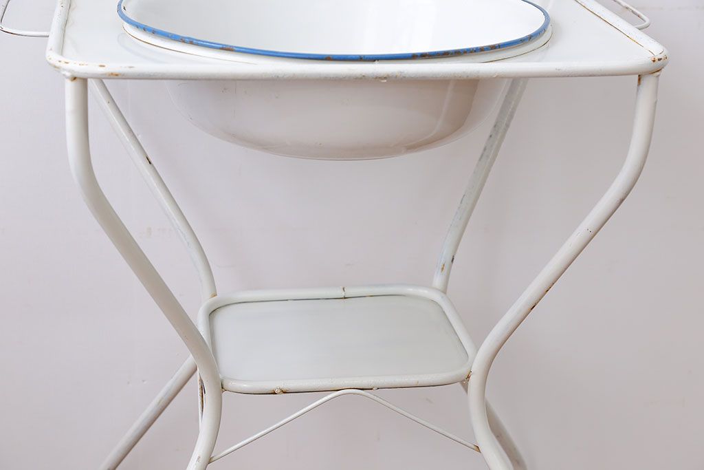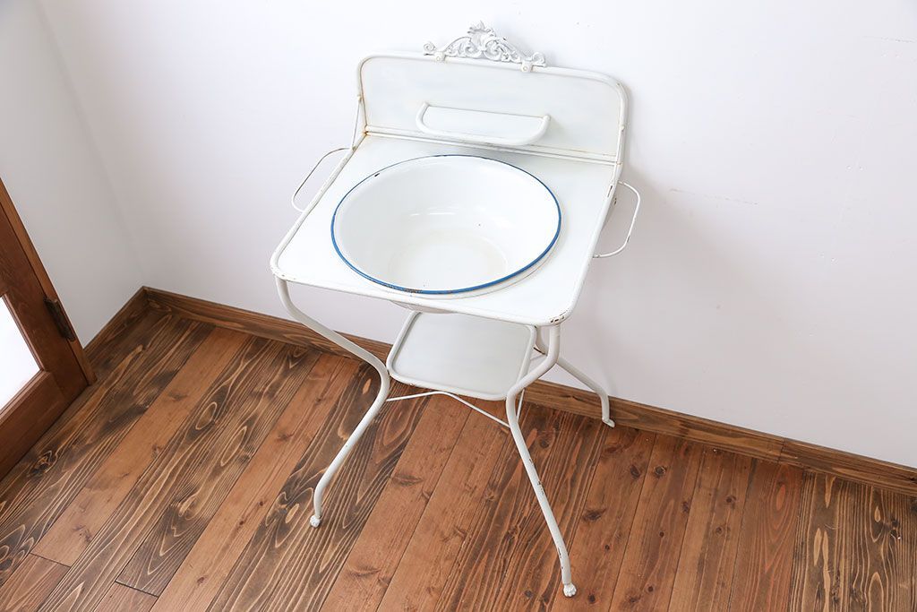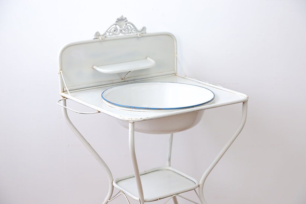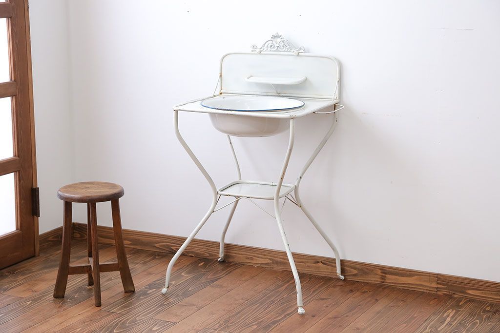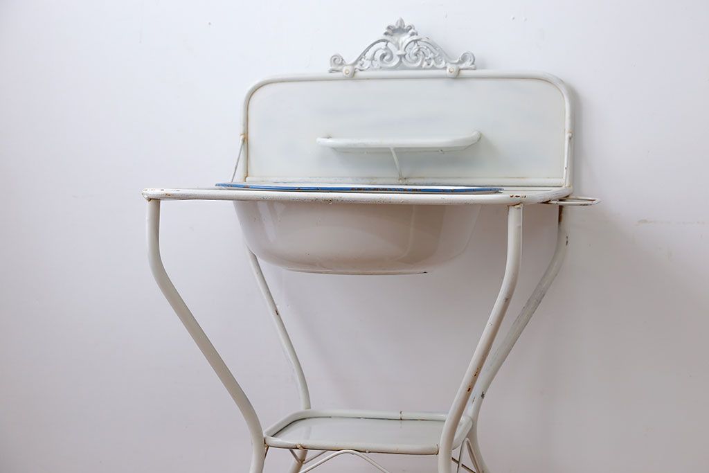 ラフジュ工房> オープンラック・シェルフ> ディスプレイラック > アンティーク雑貨 イギリスアンティーク ホーロー洗面台(2)