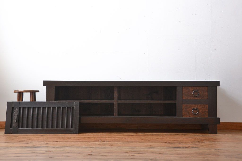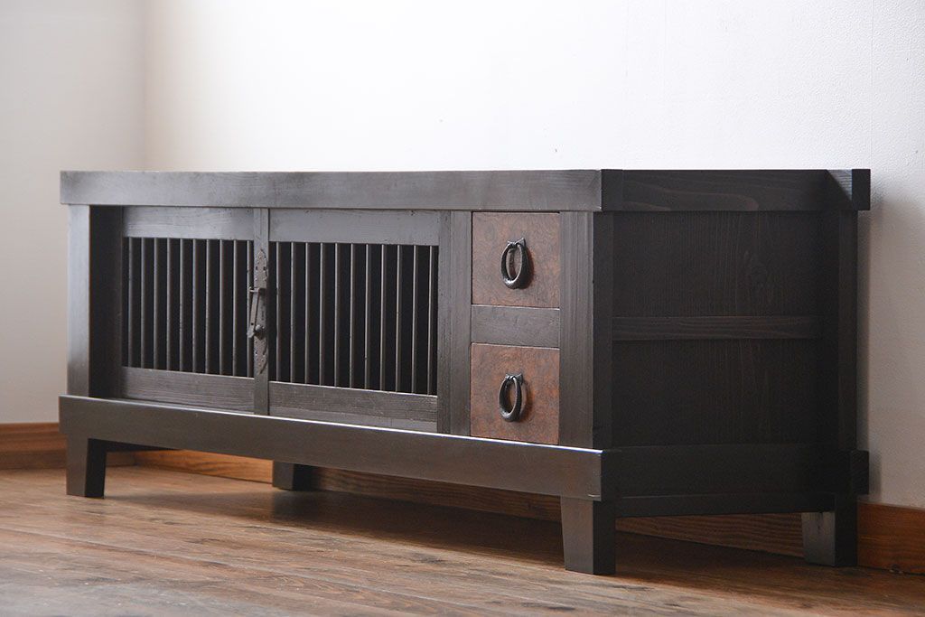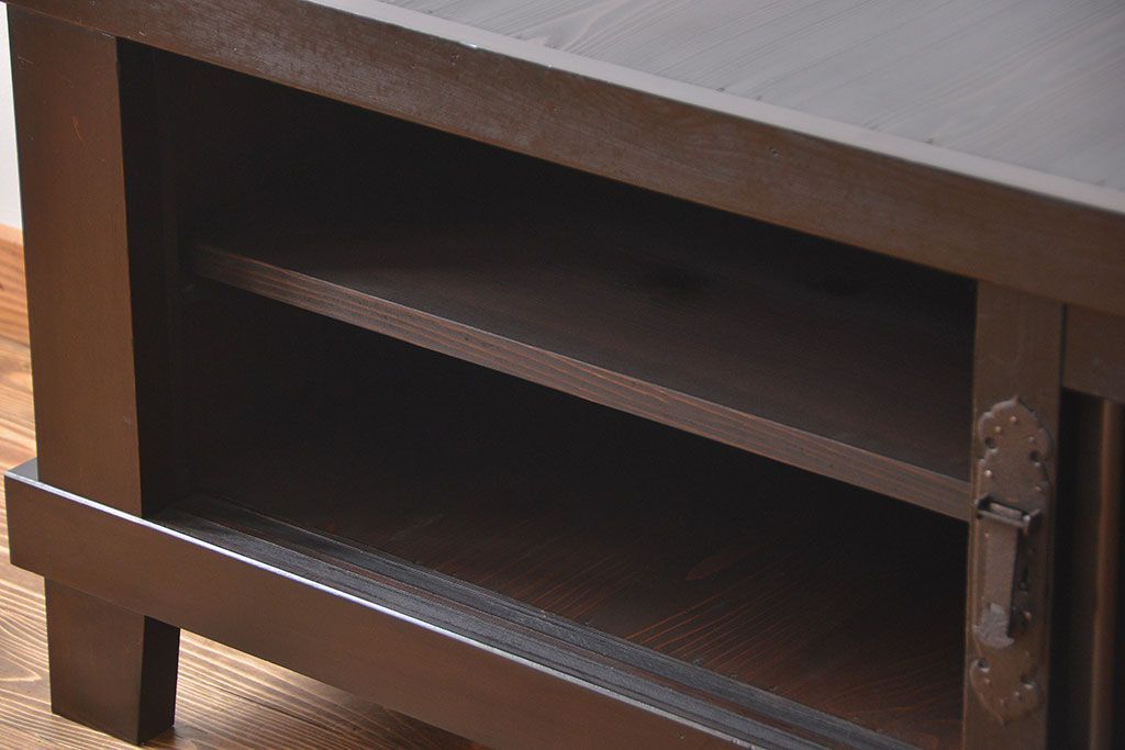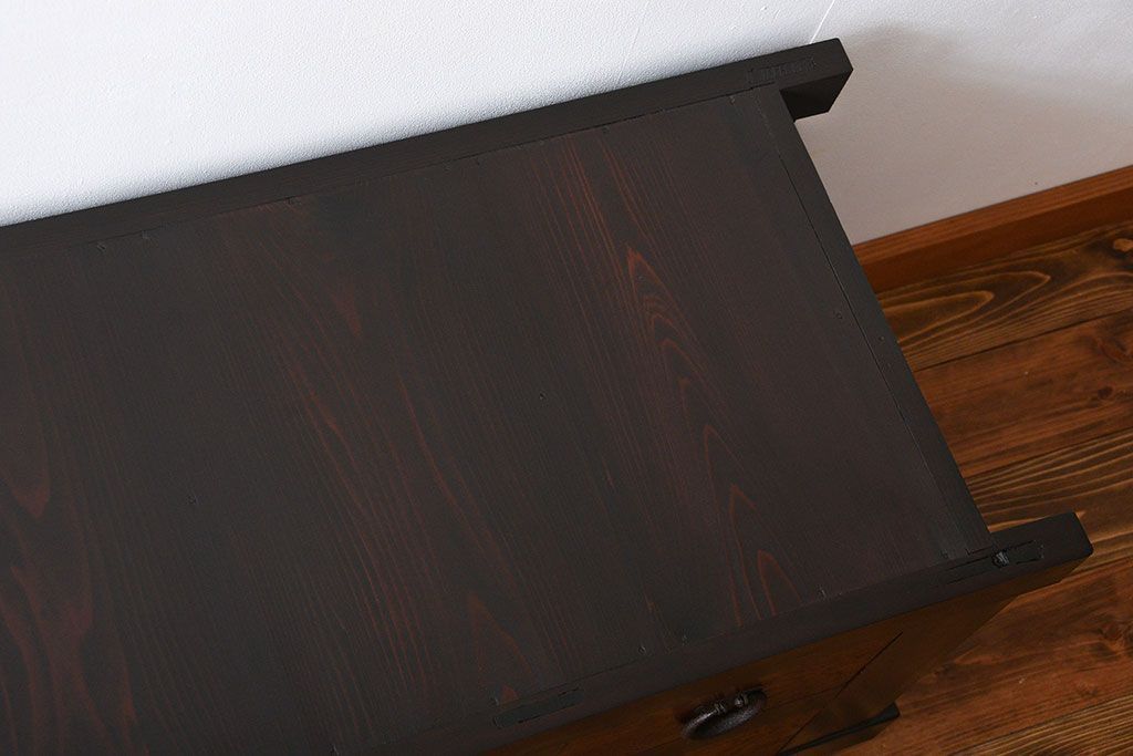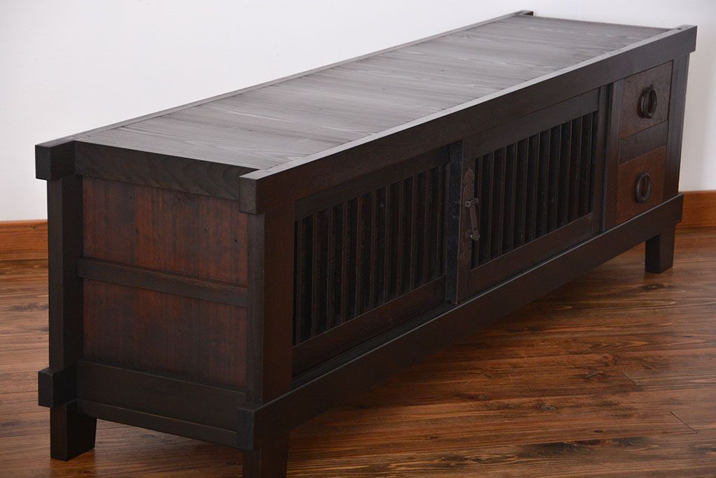 本体と引き出しの色合いのコントラストが素敵な、水屋箪笥ローボードです。