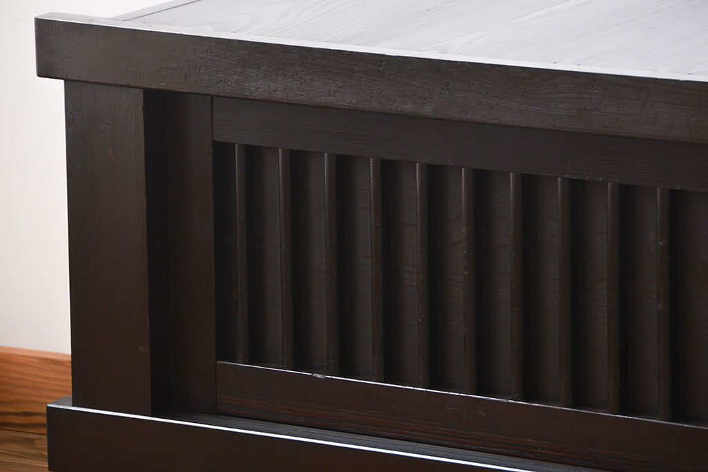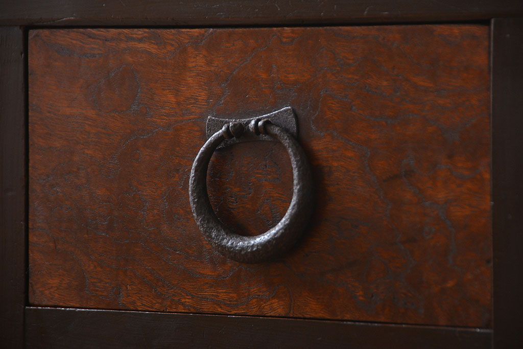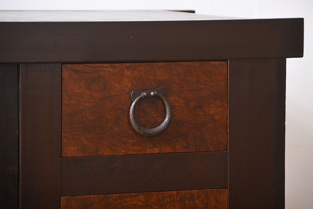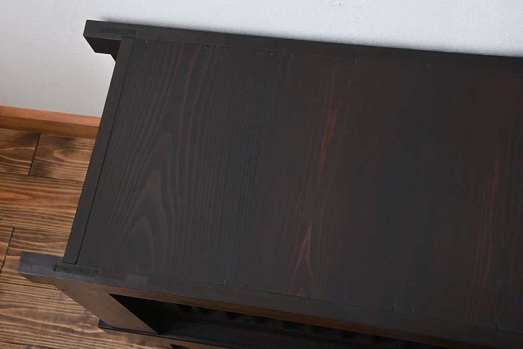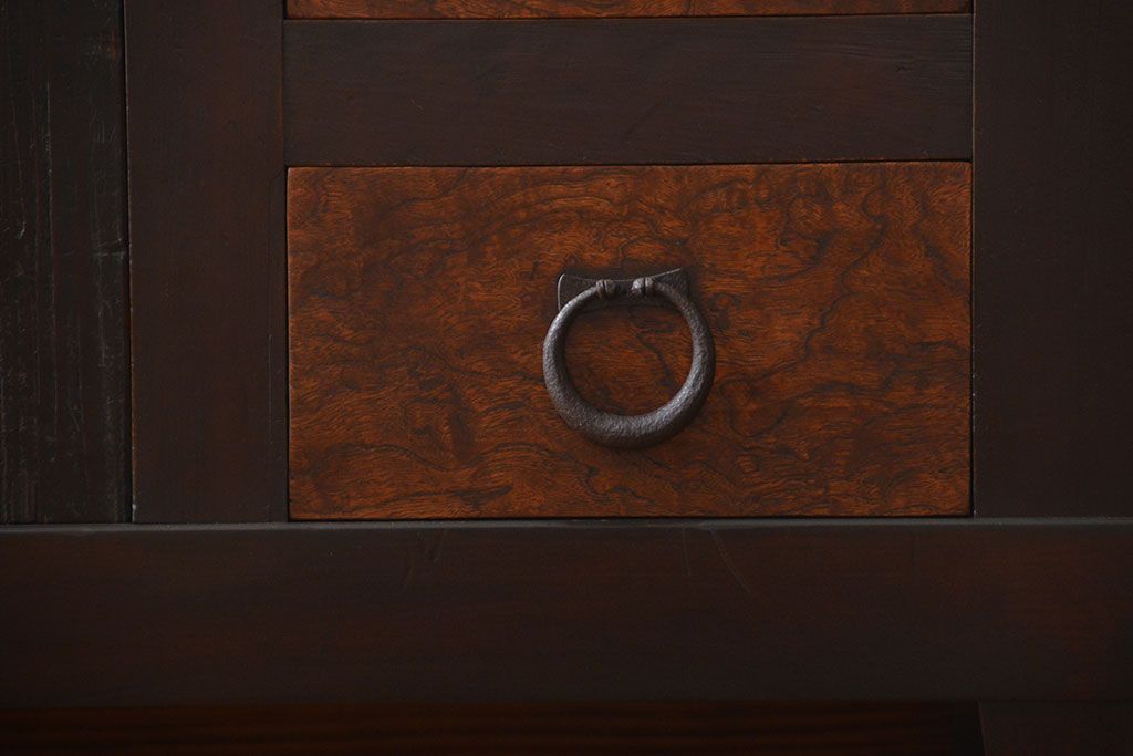 本体と引き出しの色合いのコントラストが素敵な、水屋箪笥ローボードです。