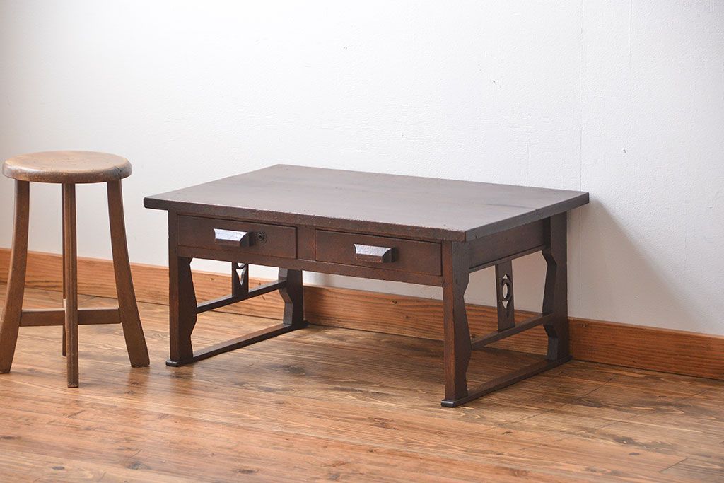 アンティーク家具 アンティーク ナラ材 シックな文机(1)
