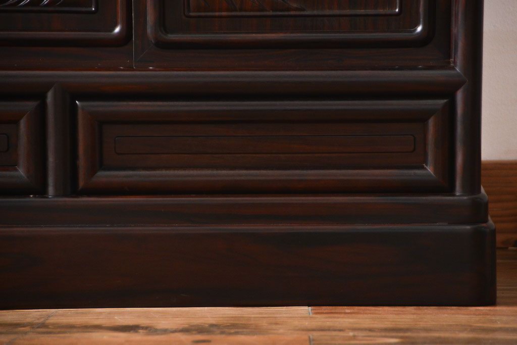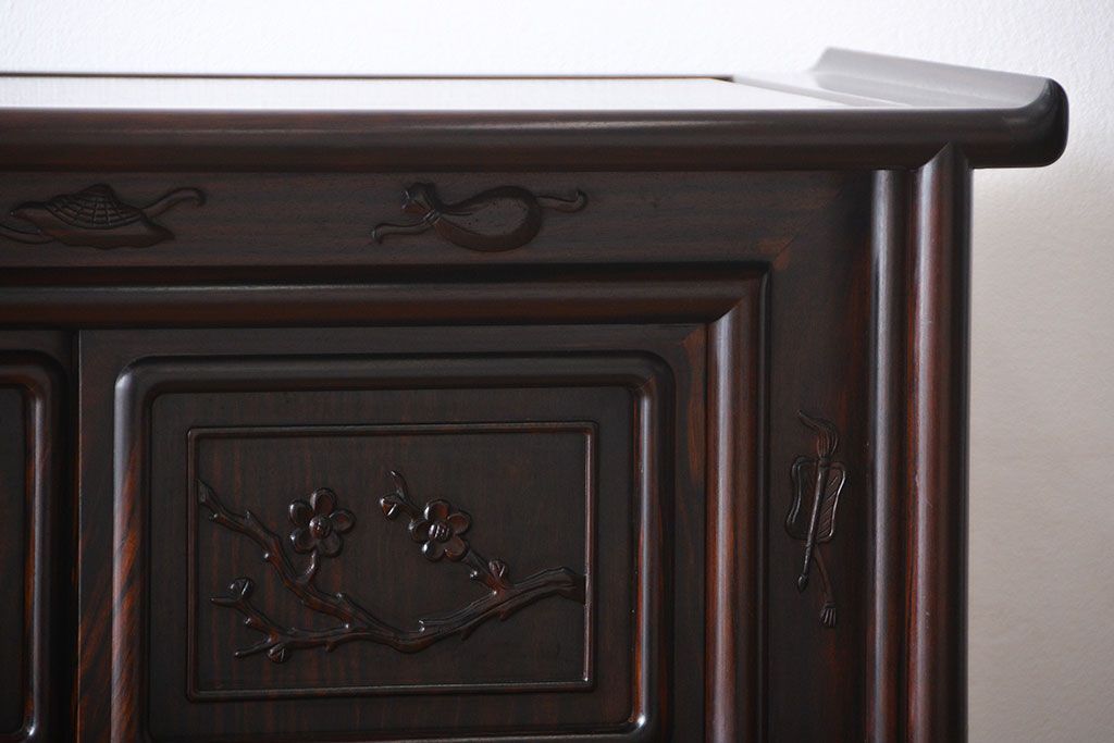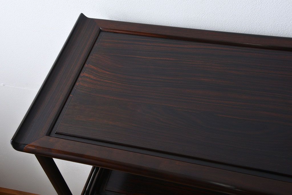 黒檀材の波を打つような木目が美しい、茶棚です。