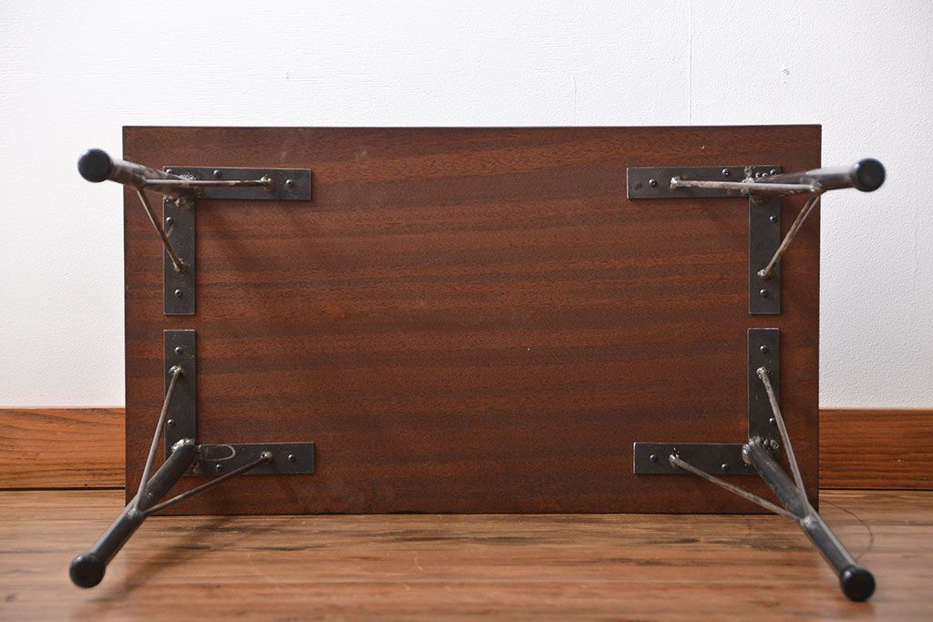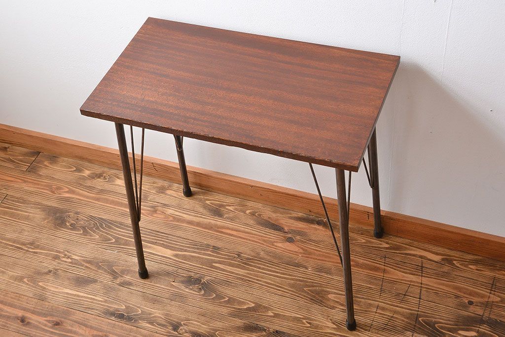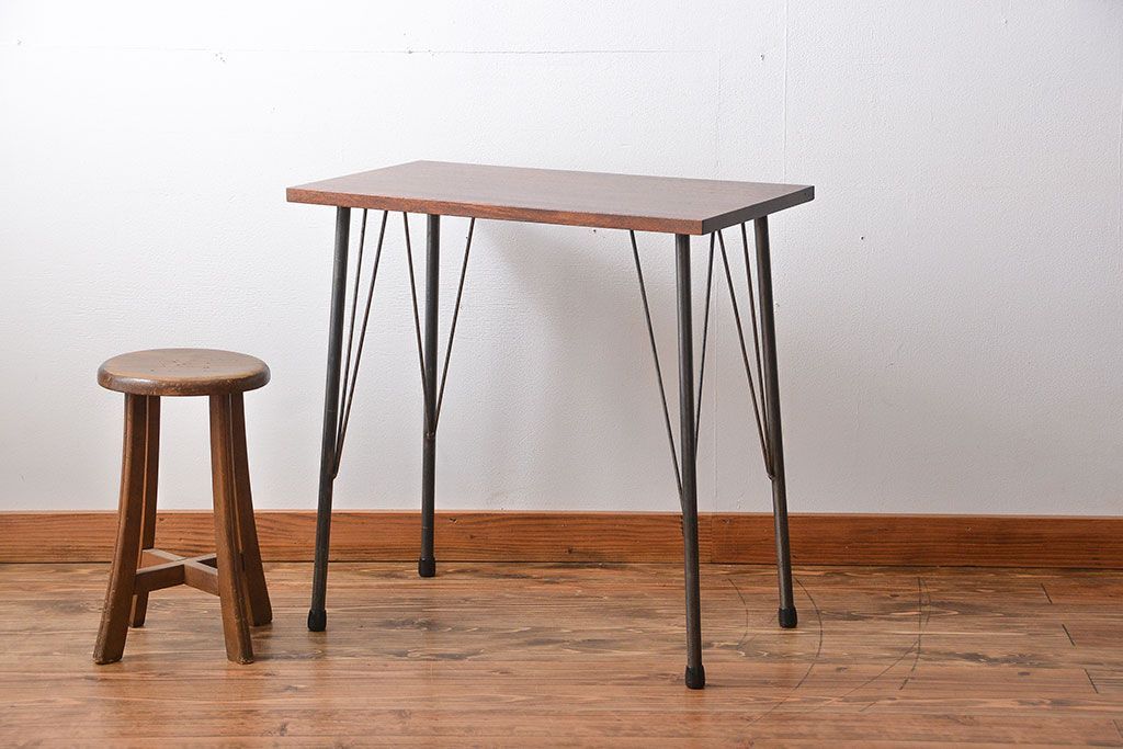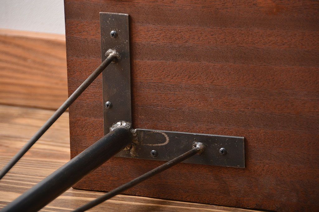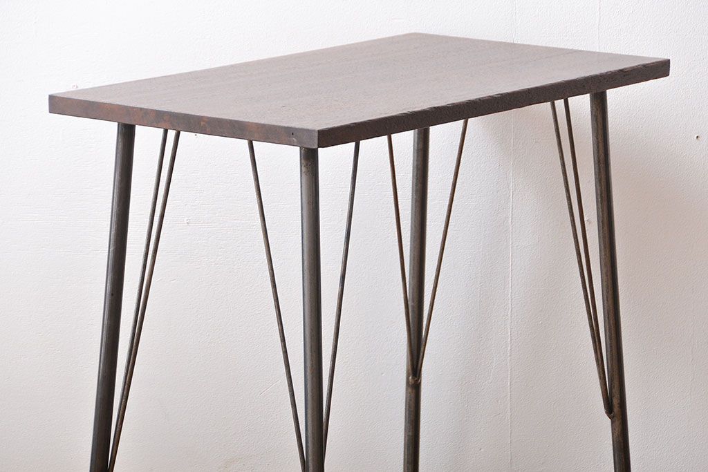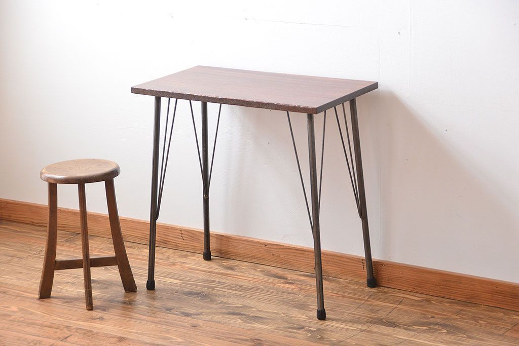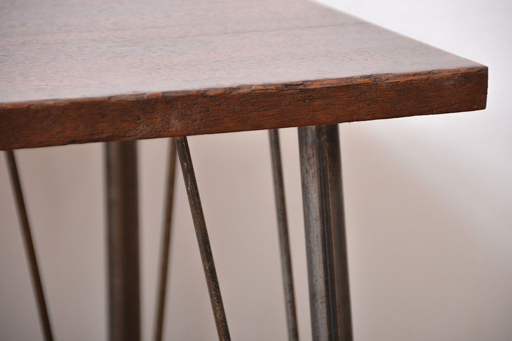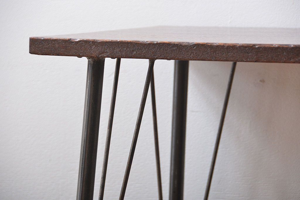 アンティーク家具 アンティーク 天板一枚板!古材を使った鉄脚テーブル(2)