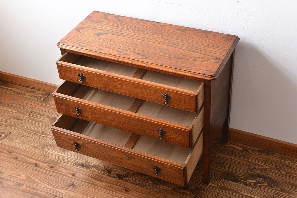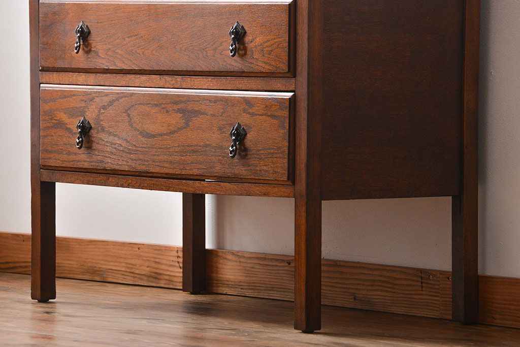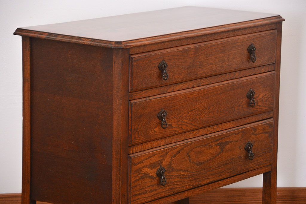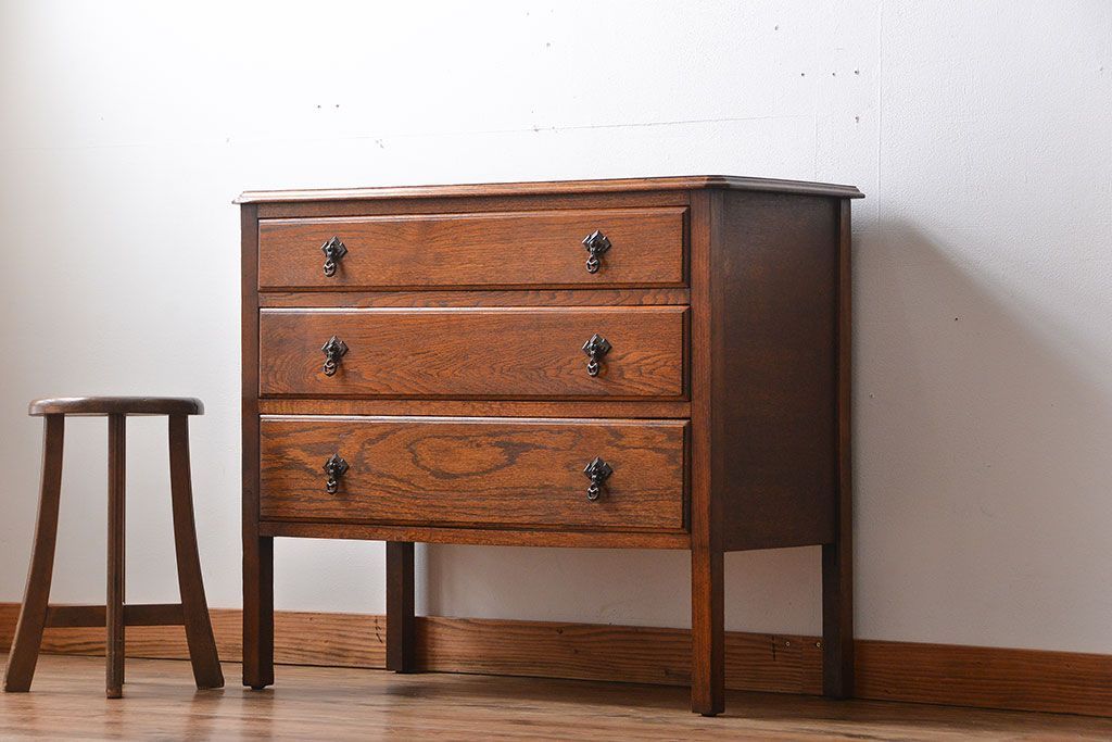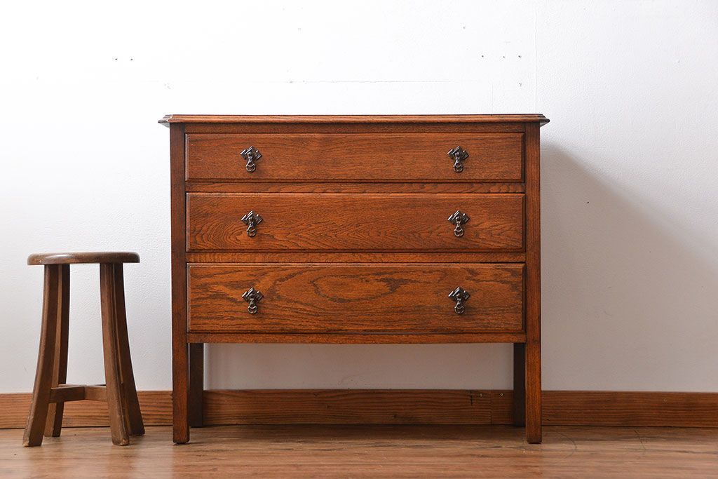 アンティーク家具 イギリスアンティーク オーク材 小振りな脚付きチェスト