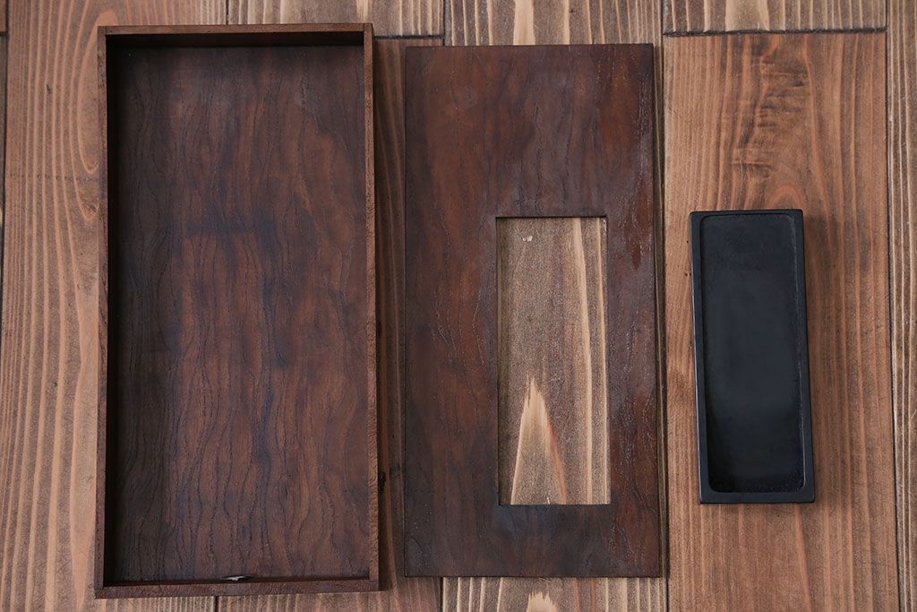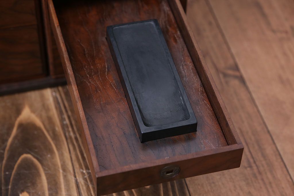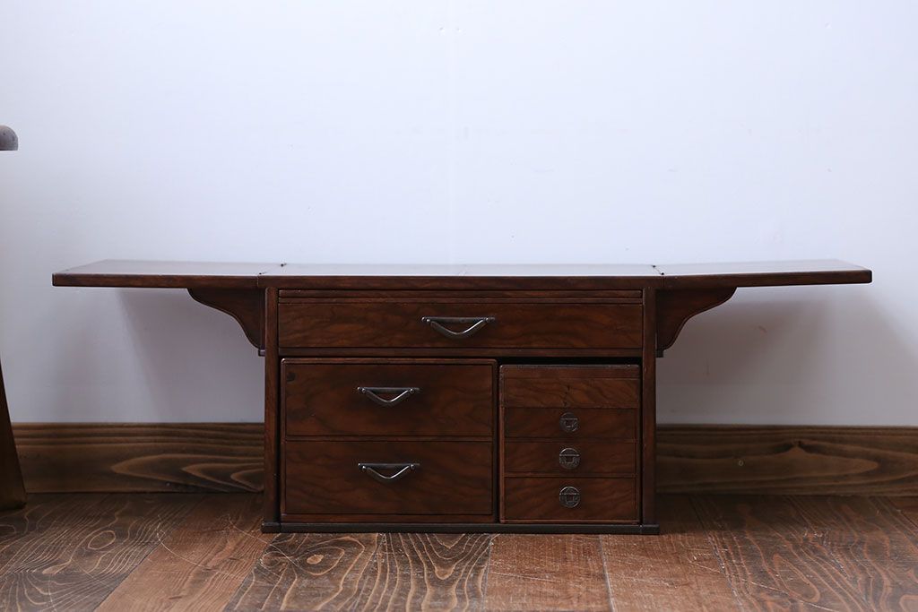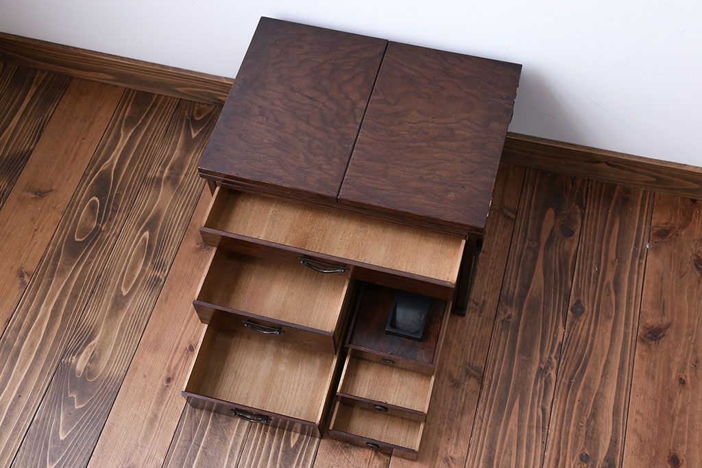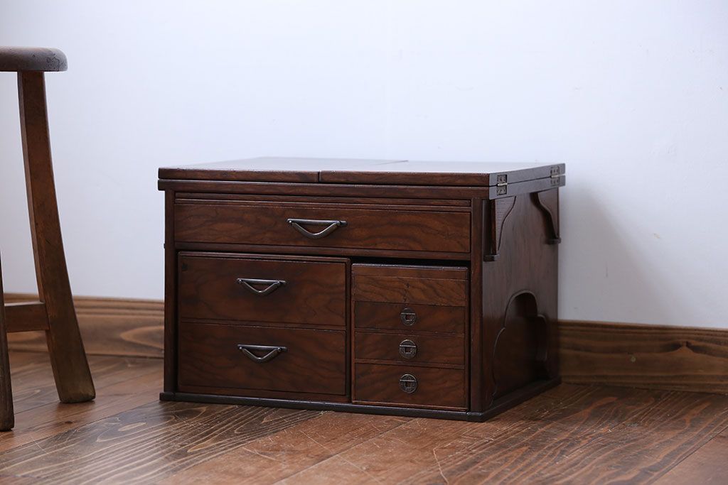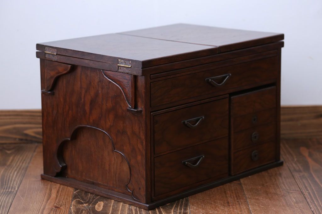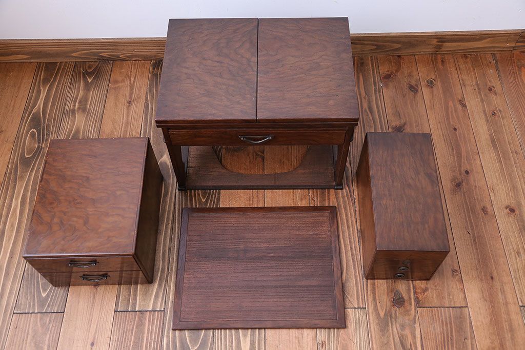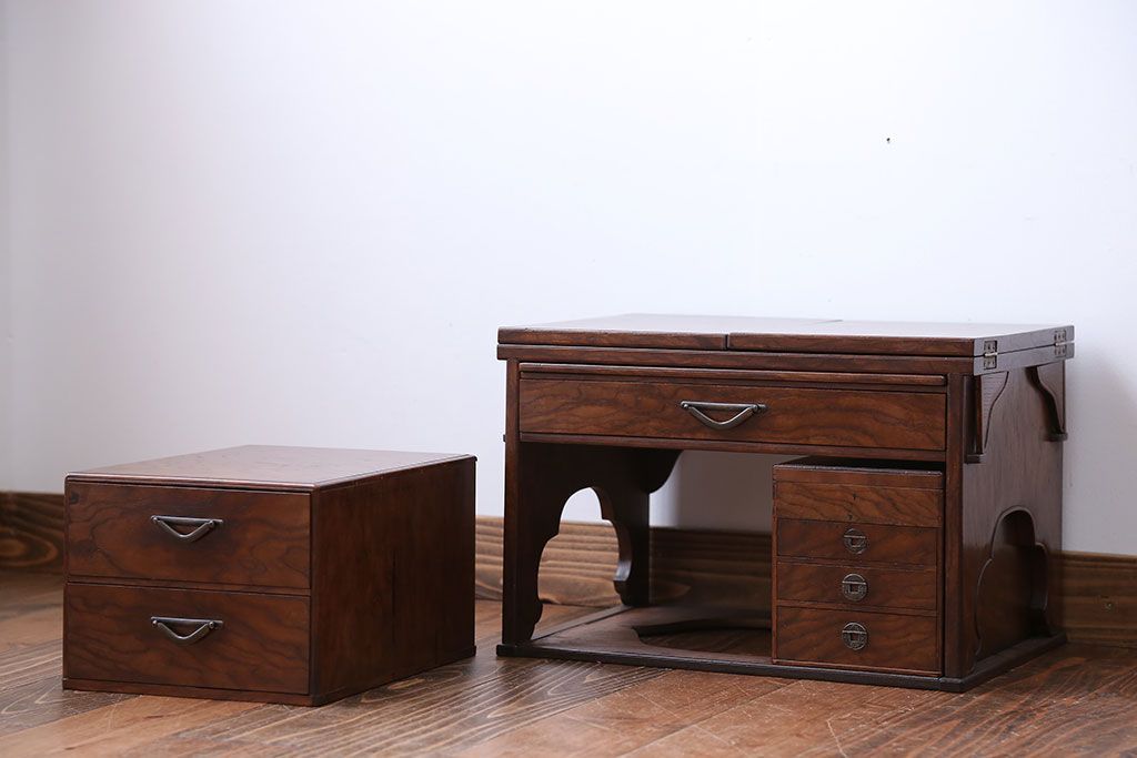 アンティーク雑貨 古民具・骨董 総桑材!指物の硯付き折り畳み式文机