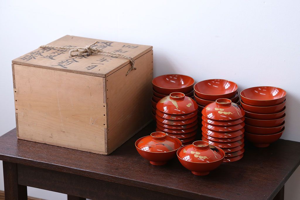 大正〜昭和初期 古い蒔絵の木製お椀 20客(漆器)です。