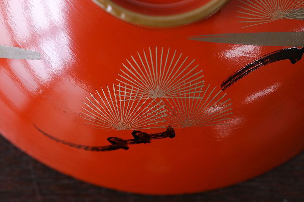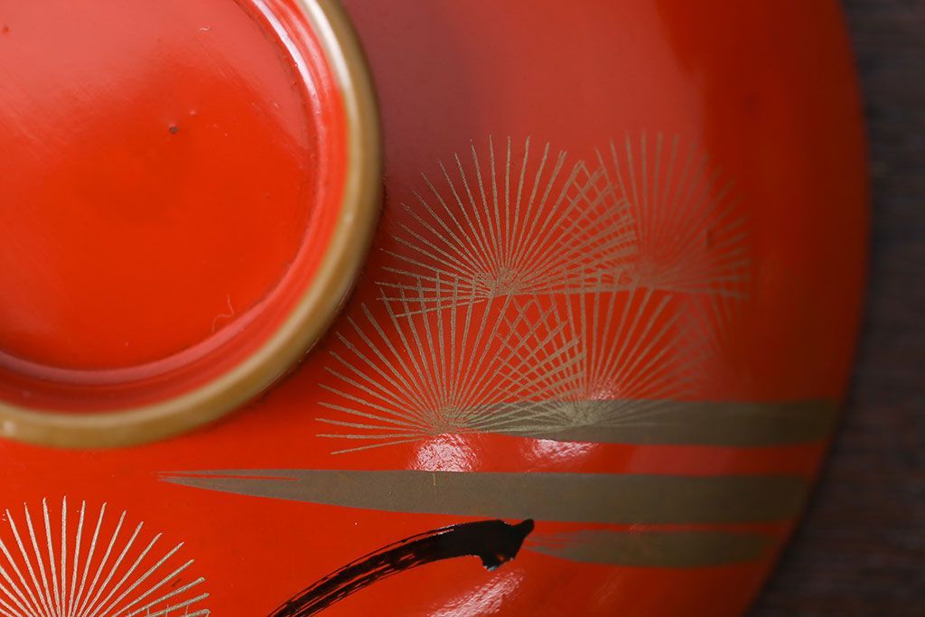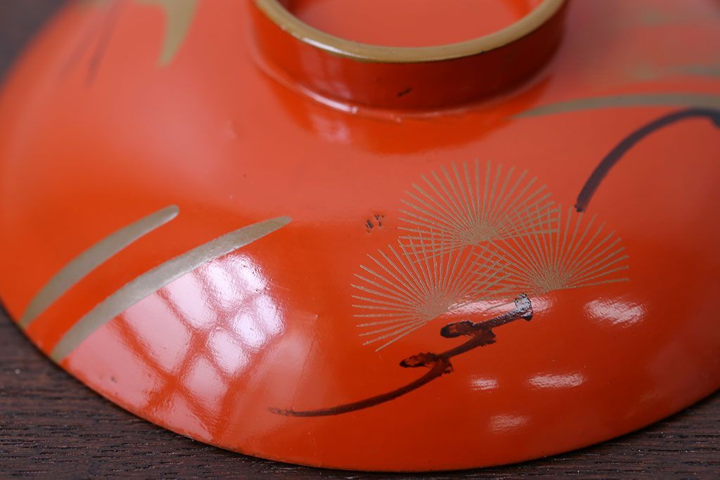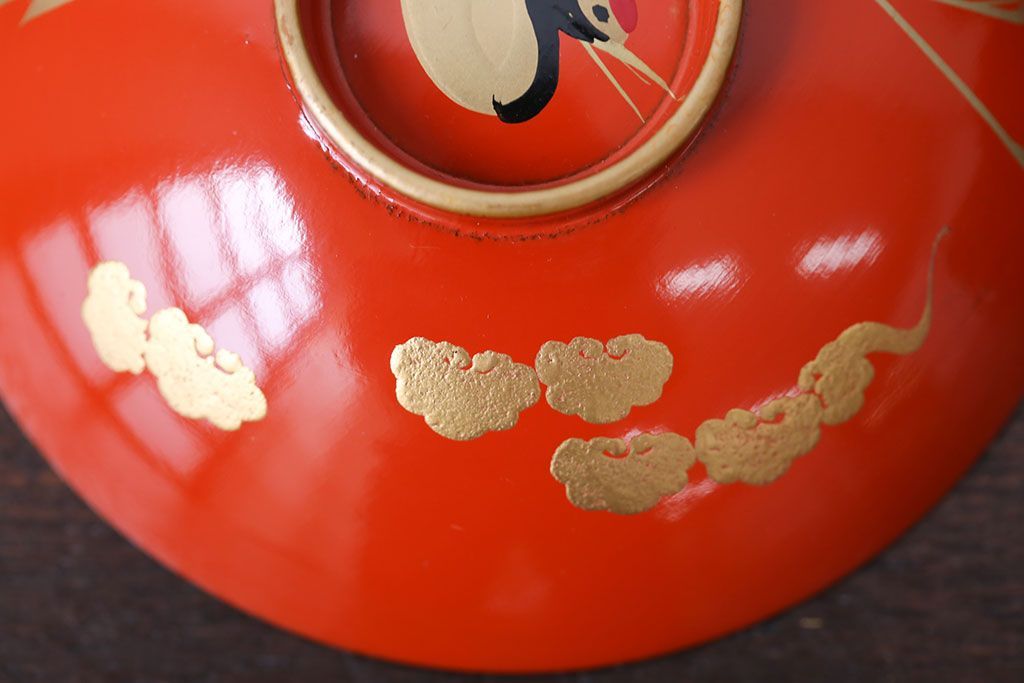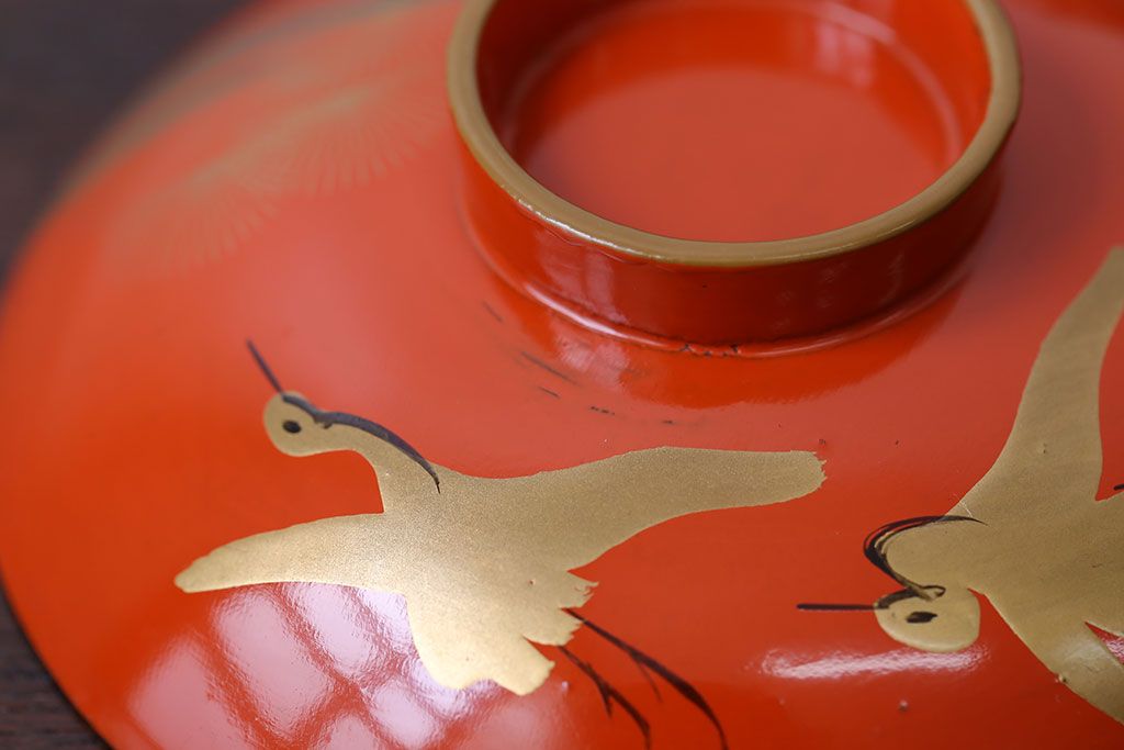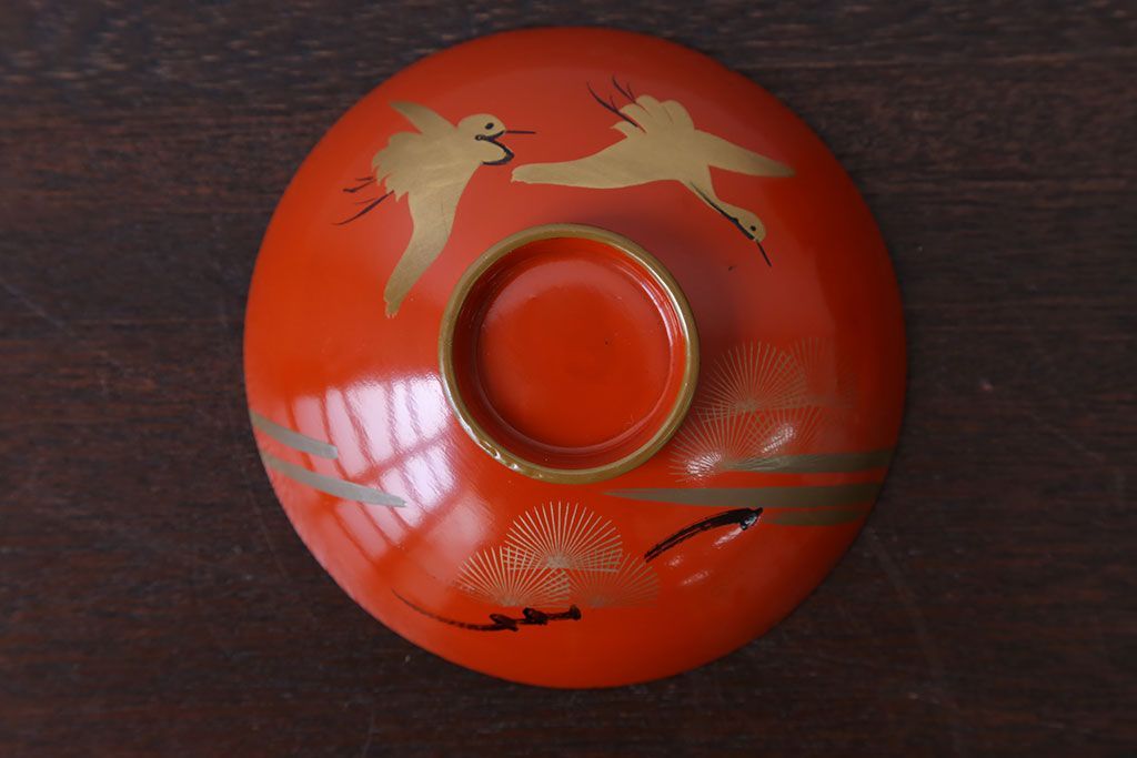 蒔絵は2種あり、鶴が2羽の物が15客、鶴1羽の物が5客です。