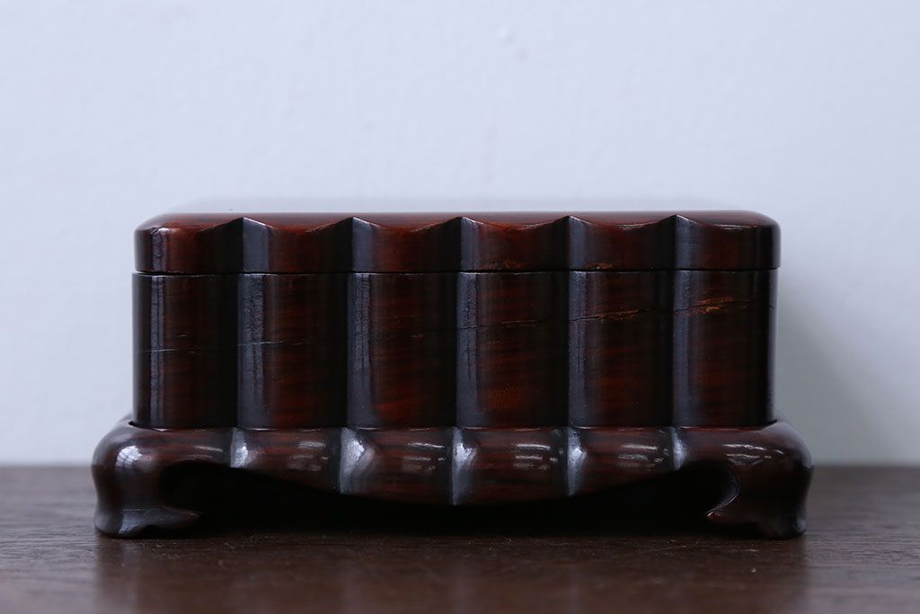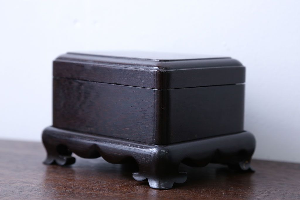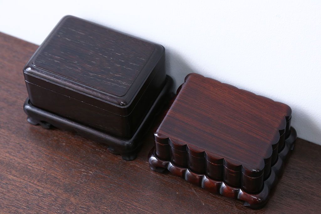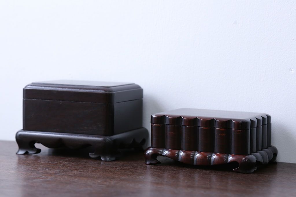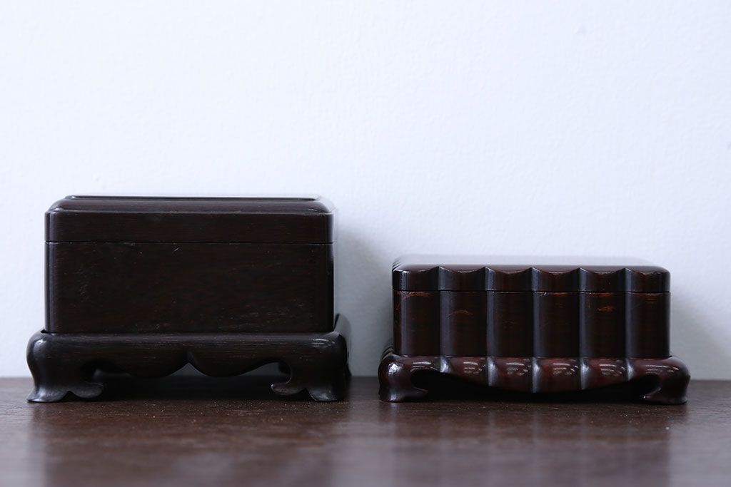 アンティーク雑貨 古い唐木煙草入れ 2点(煙草盆、蓋物)紫檀・黒檀/中国