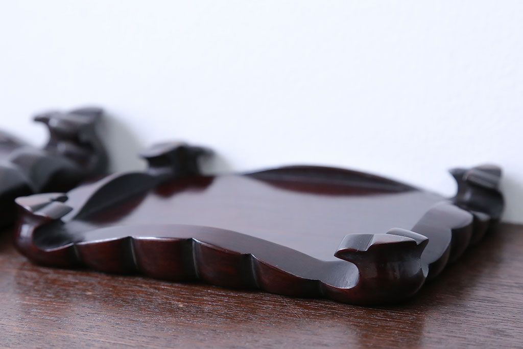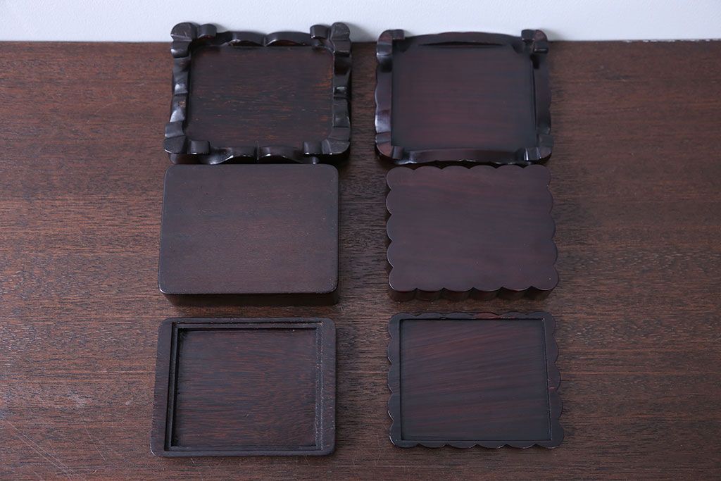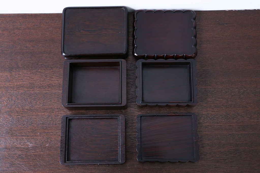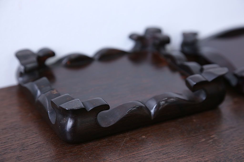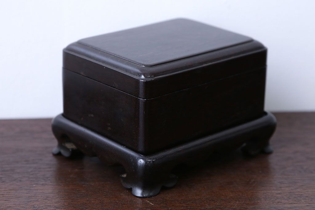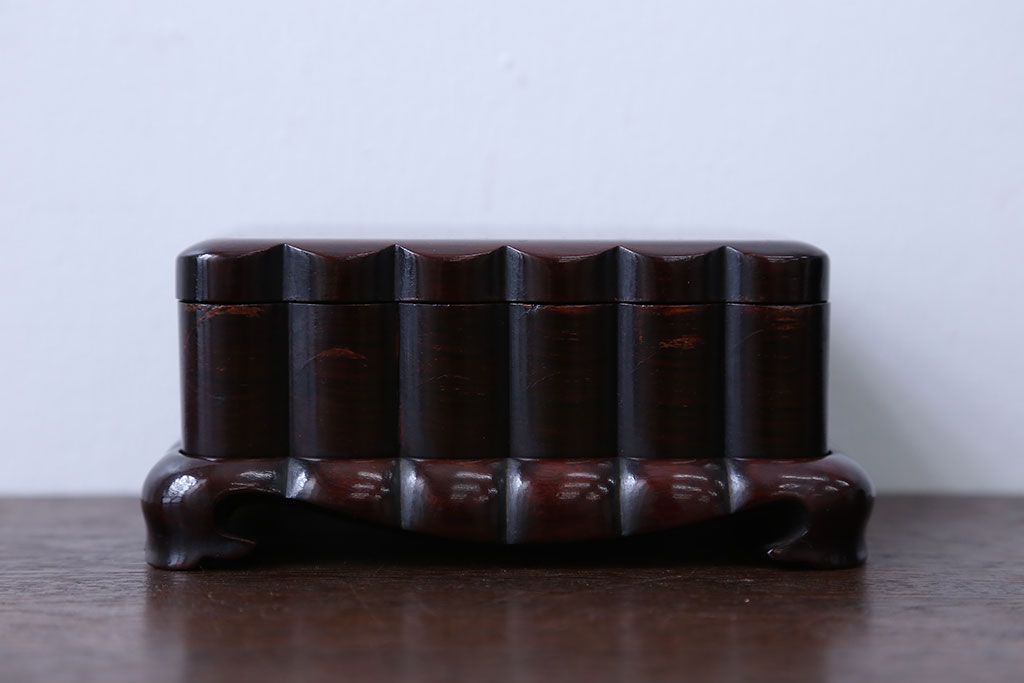アンティーク雑貨 古い唐木煙草入れ 2点(煙草盆、蓋物)紫檀・黒檀/中国