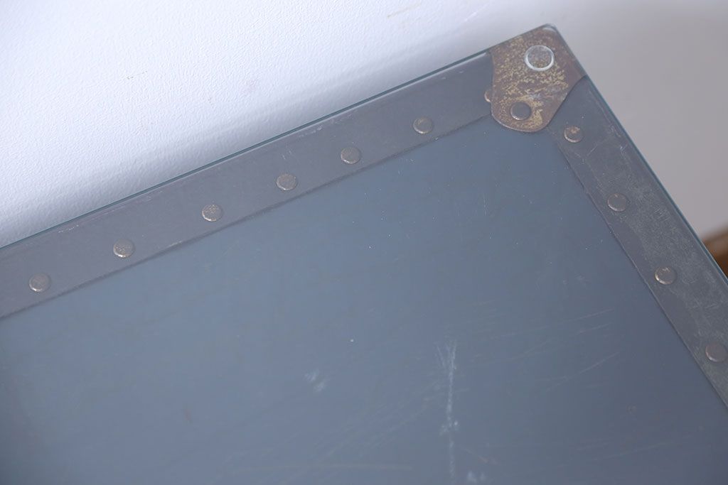天板に強化ガラス、そして、脚を取り付けてテーブルにリメイクしました。