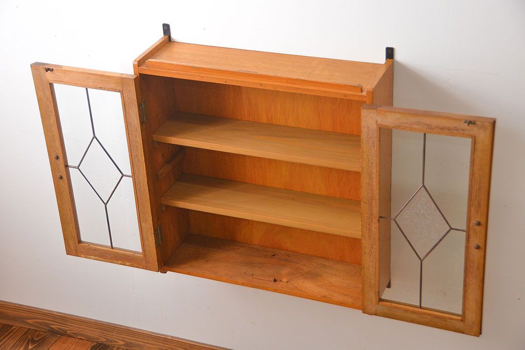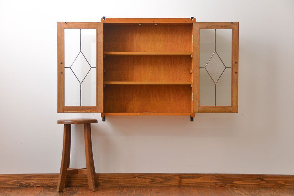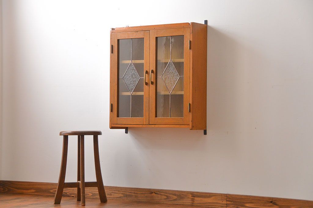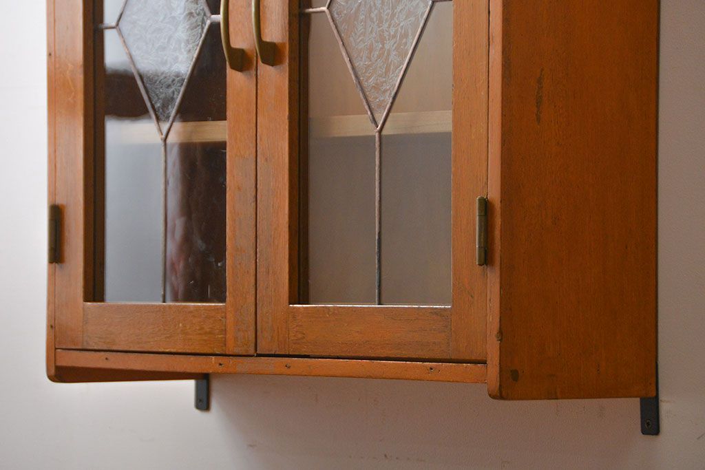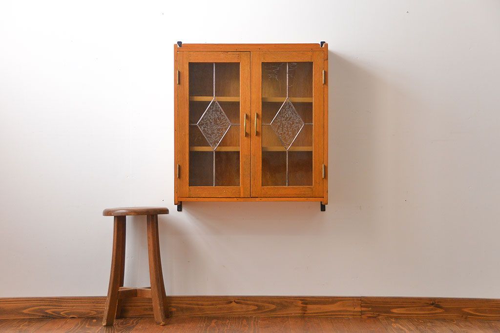 アンティーク家具 ステンドグラス戸 壁掛けキャビネット