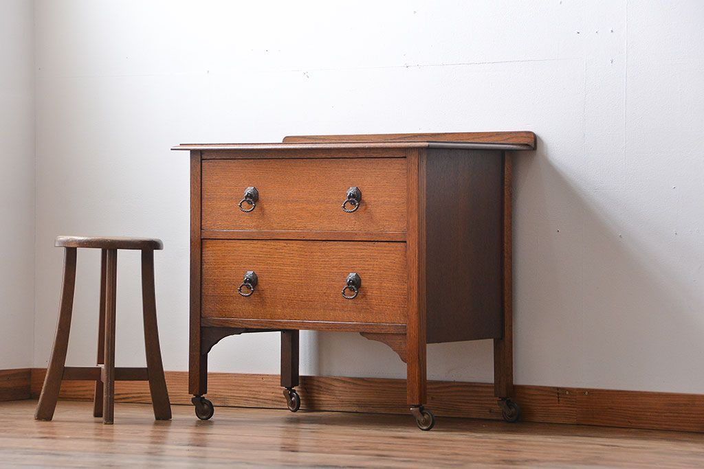 アンティーク雑貨 イギリスアンティーク オーク材の小振りなベッドサイドテーブル
