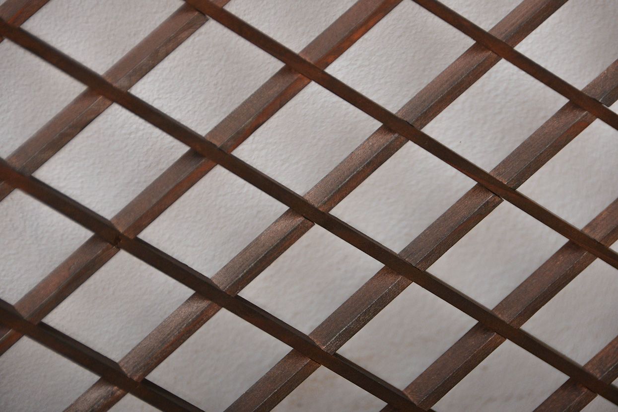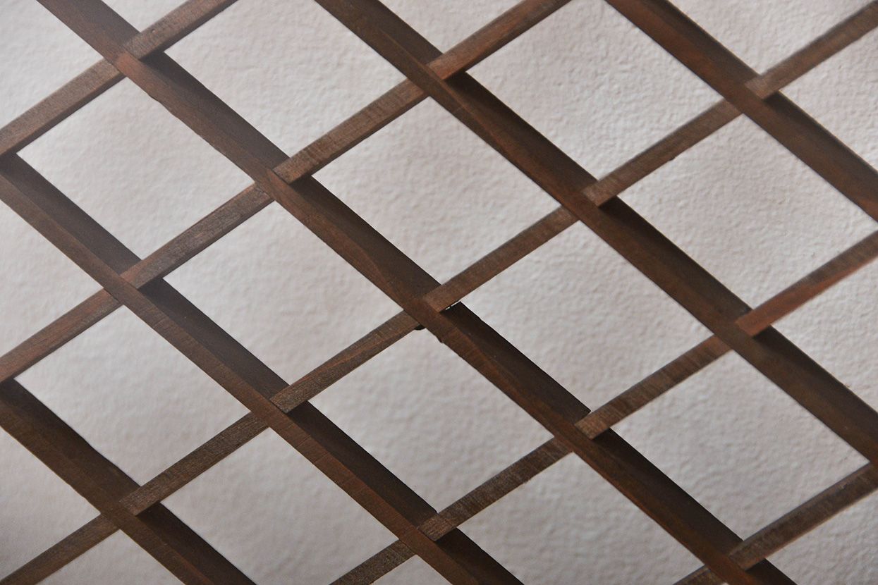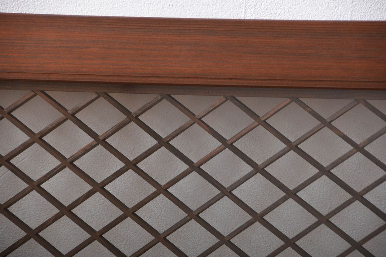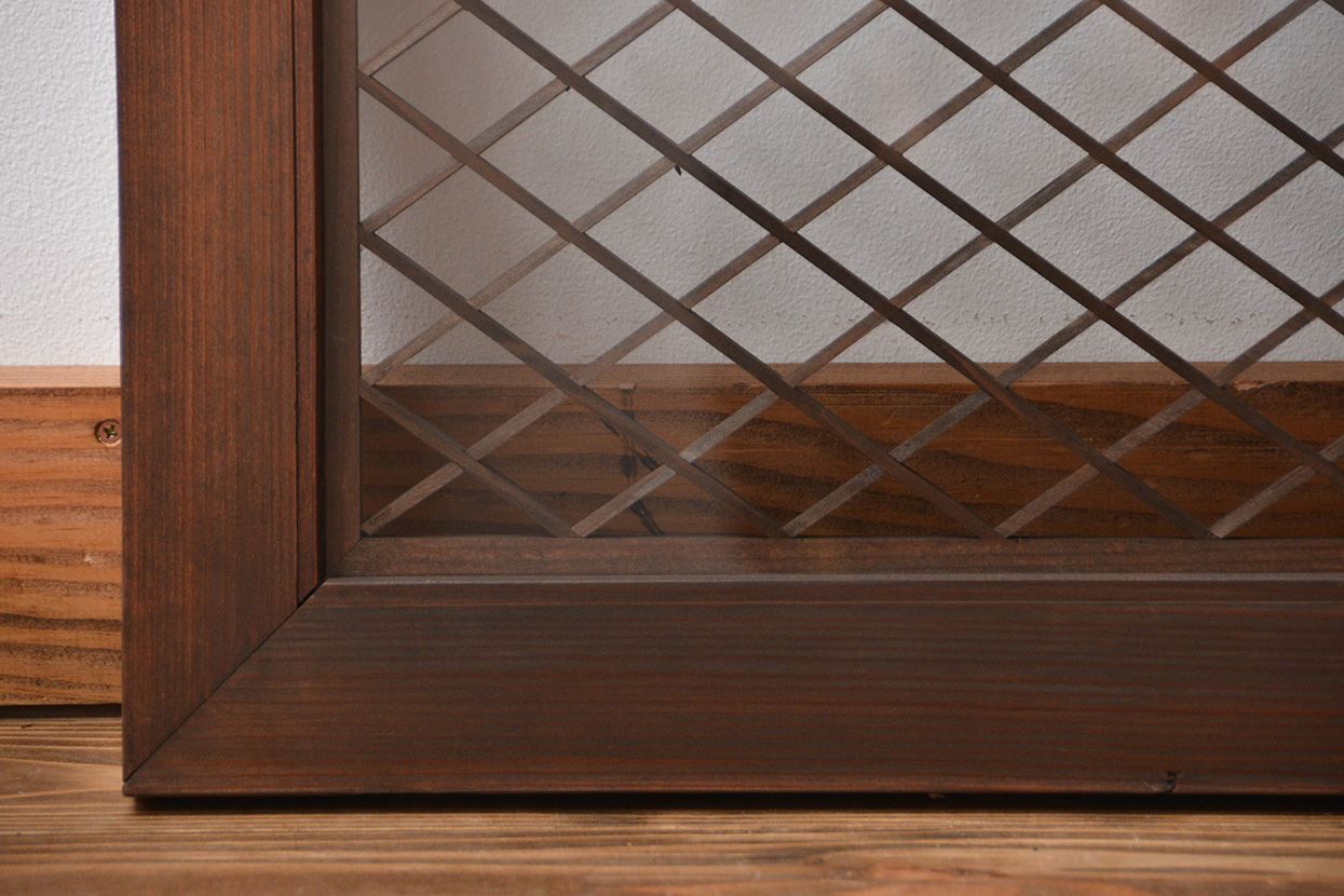 ----※ご注意ください※-------------------------------------- こちらの商品は、玄関先でのお渡しとなります。 また、お届けの際のお日にち指定・お時間指定・代金引換(コレクト)にも対応しておりません。 予めご了承ください。 ----------------------------------------------------------- 古民具・骨董 ガラス入り欄間(2)です。 細かなデザインが美しいガラス入りの欄間です。 組子意匠の基本である、菱組子の一品です。 シンプルで美しく、モダンな雰囲気があるので、 現代の家具やインテリアとも相性抜群です。 パーテーションとしてもご使用いただけます。 使用上問題のあるダメージはありません。 ■框サイズ 上下各55mm/左右各50mm ■重量 約6kg
