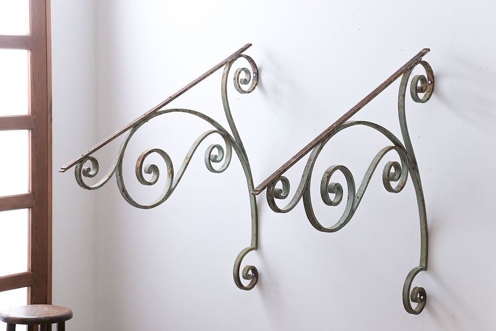 アンティーク雑貨 イギリスアンティーク ロートアイアンステー2つセット