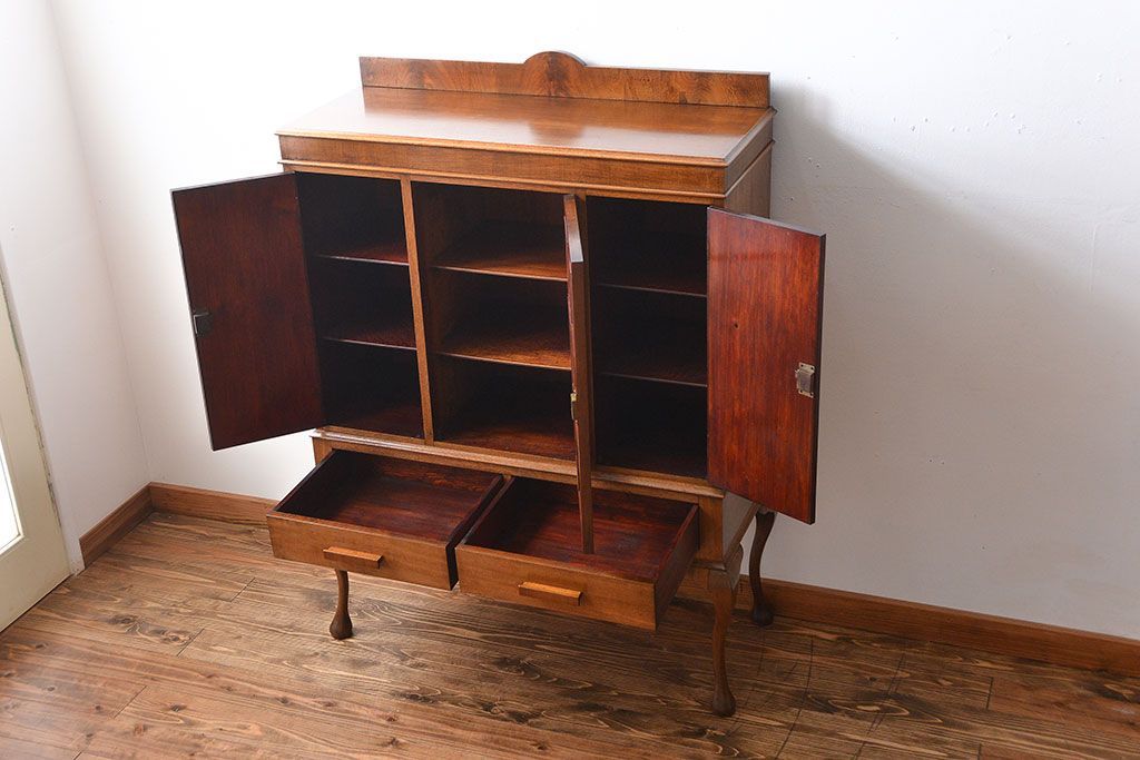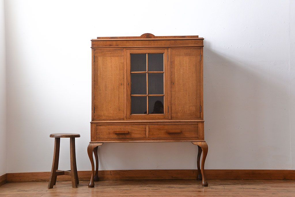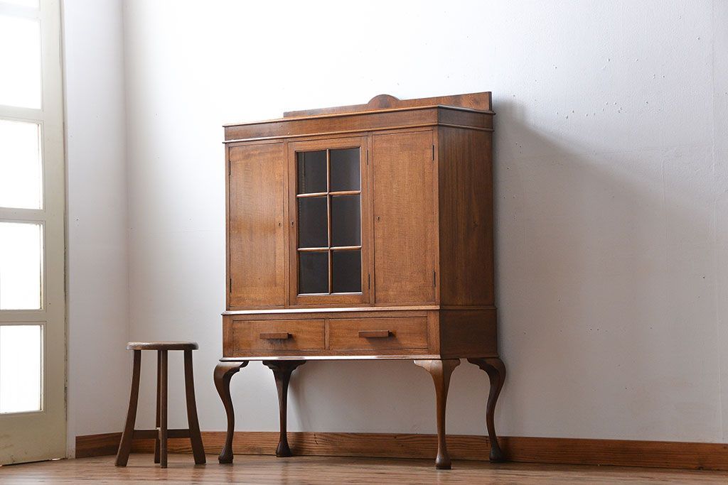 人気の猫脚がかわいらしいイギリスアンティークのキャビネットです。