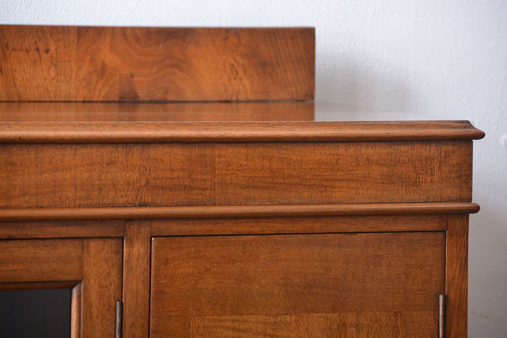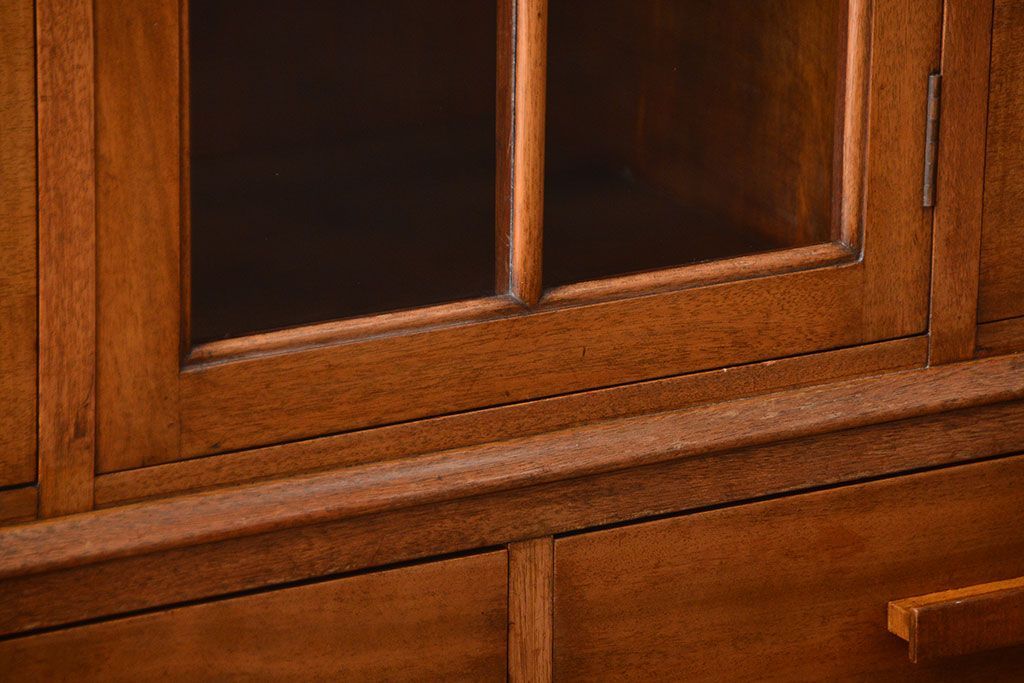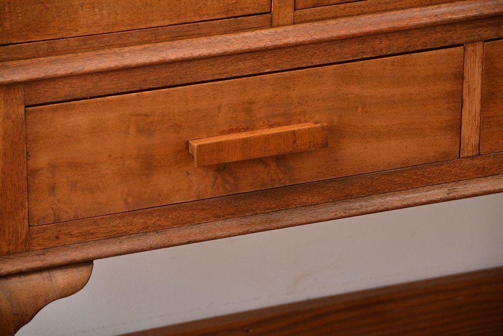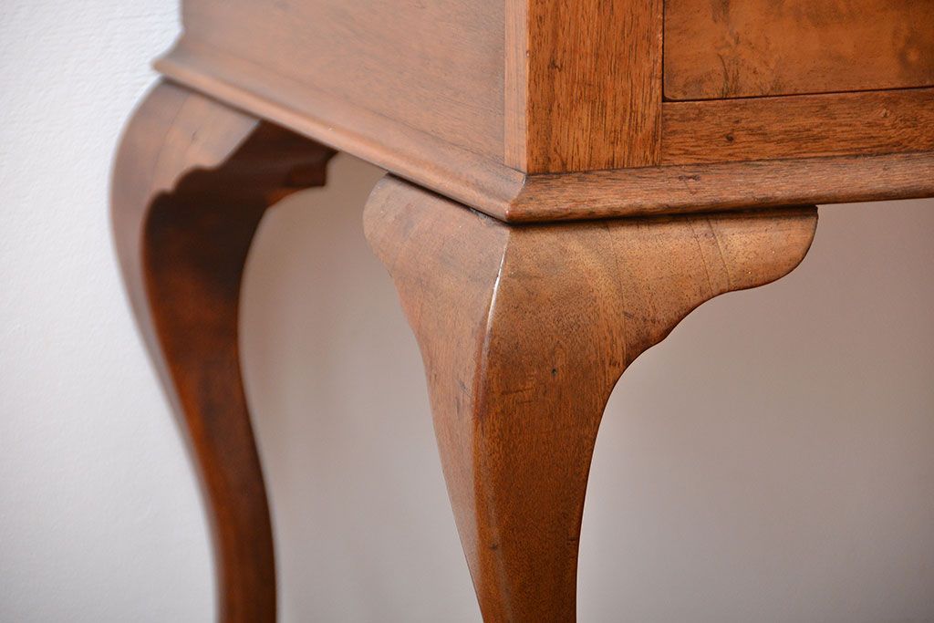 直線的な戸棚のフォルムと、曲線的な脚のフォルムが、