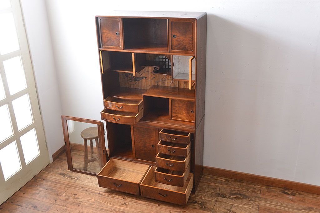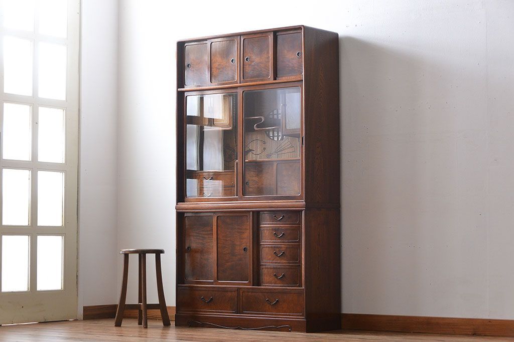アンティーク家具 アンティーク 前面桑張りの上品な茶箪笥