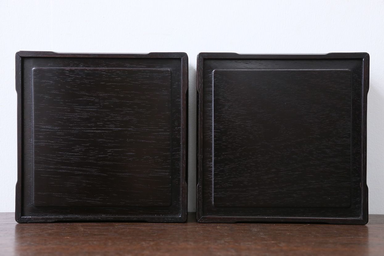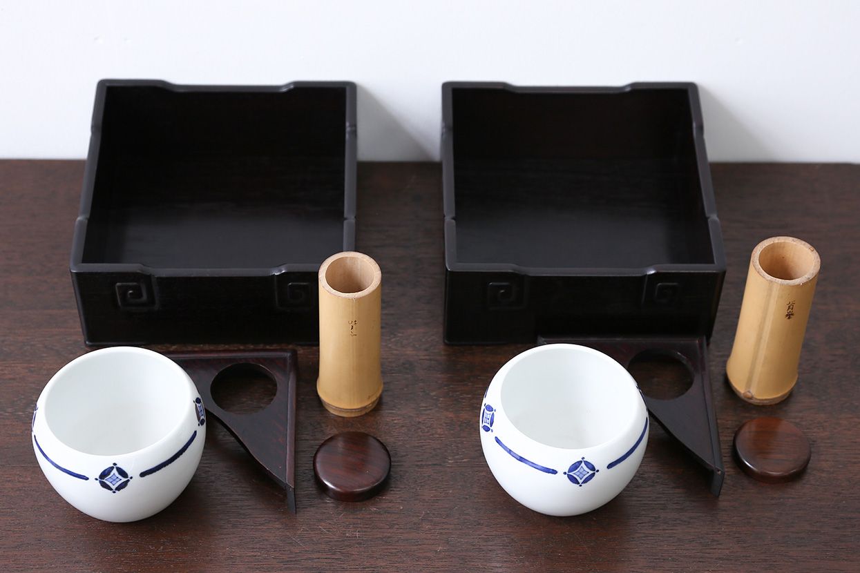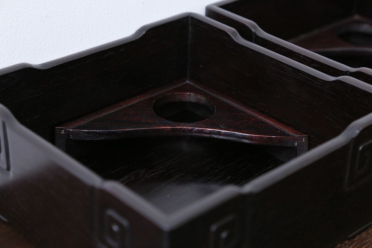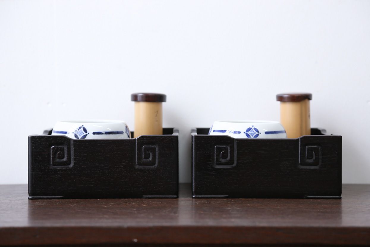 アンティーク雑貨 古い唐木煙草盆1対(火入れ、竹筒)(1)