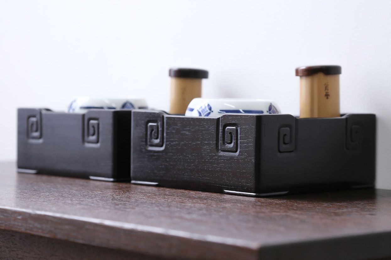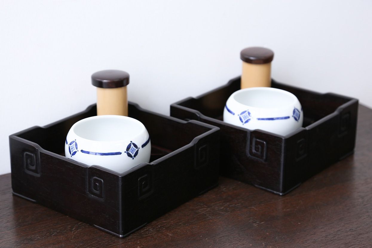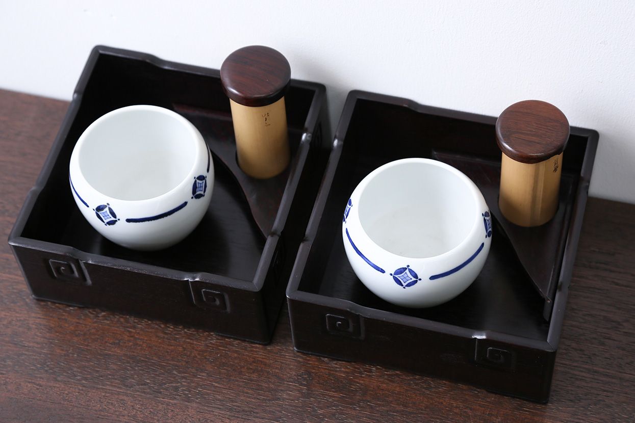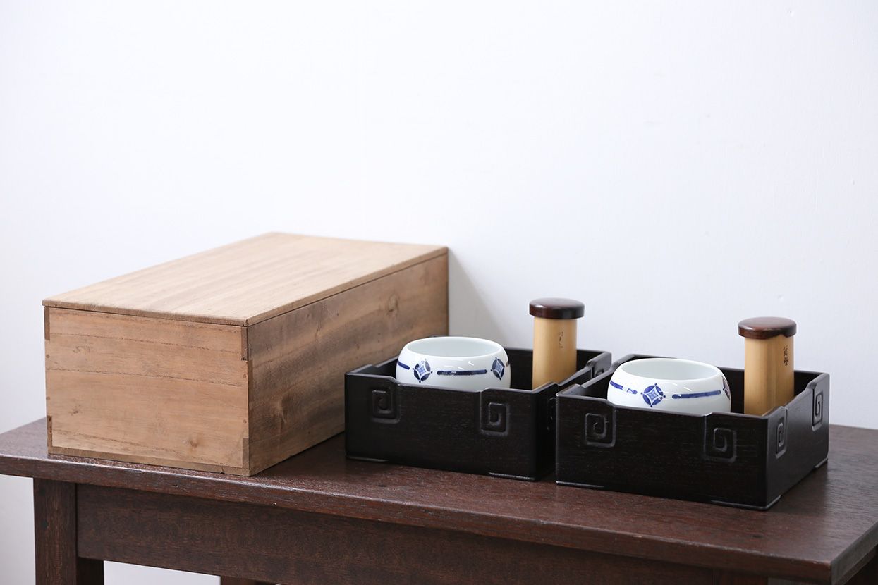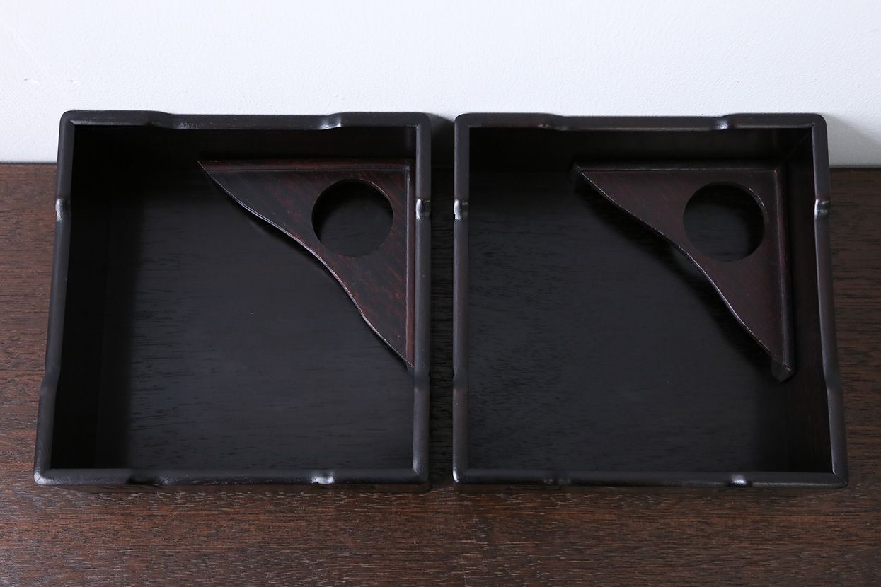 アンティーク雑貨 古い唐木煙草盆1対(火入れ、竹筒)(1)