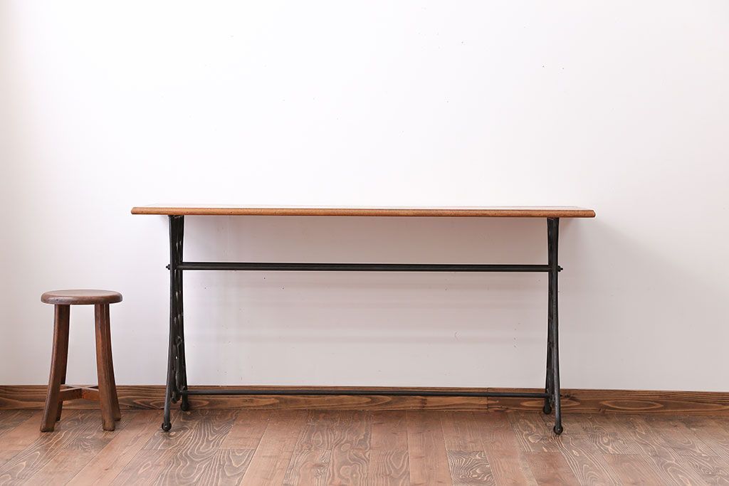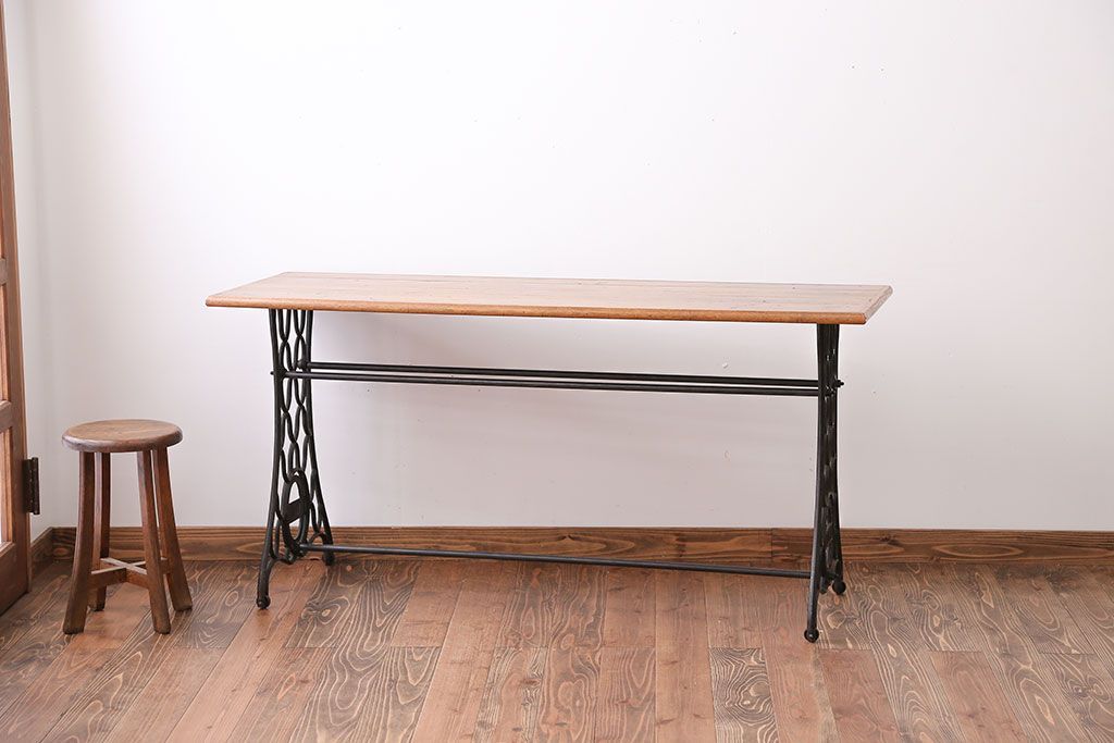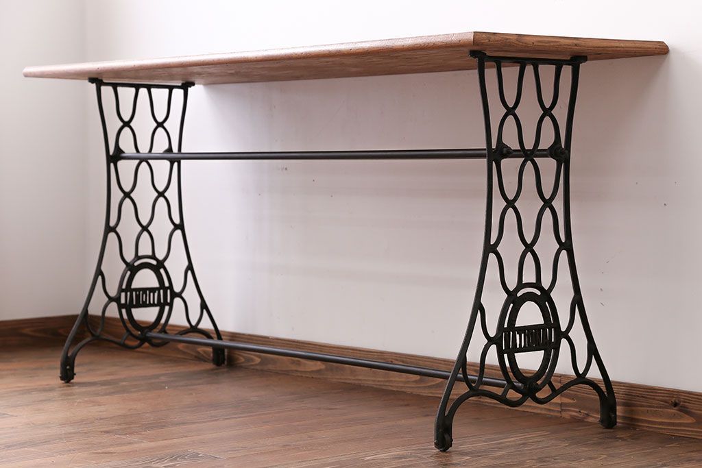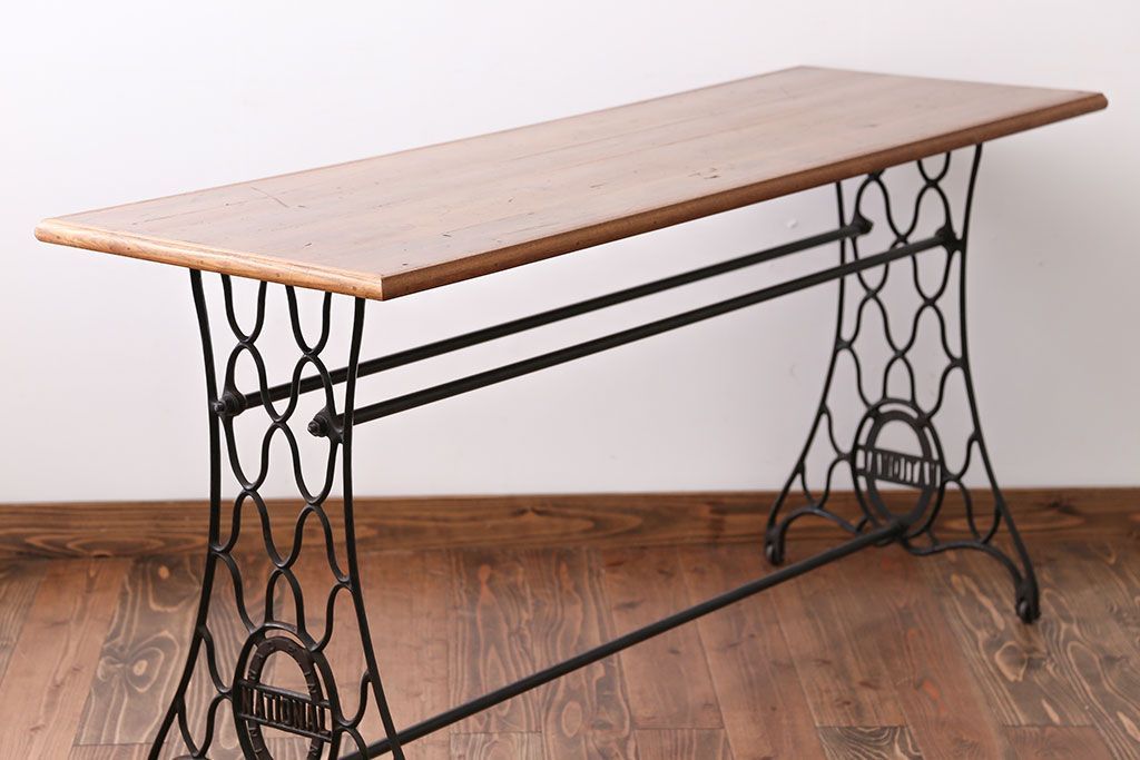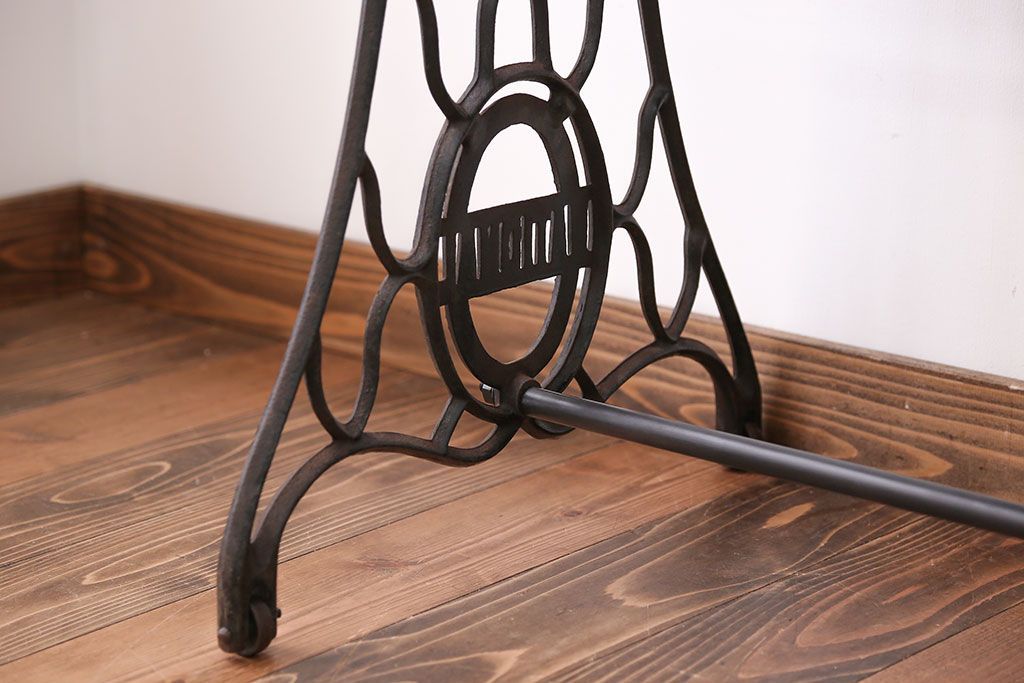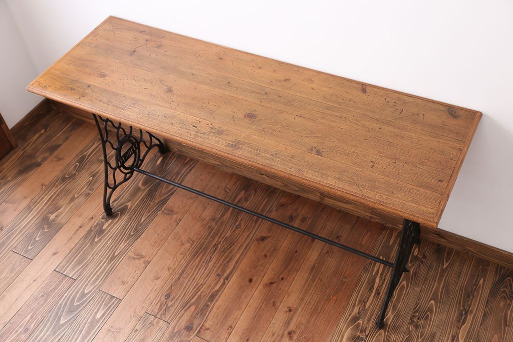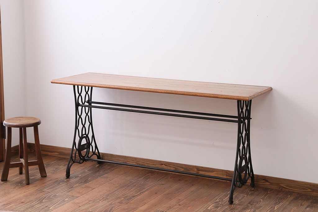 足踏みミシンをリメイクして作った、ミシンテーブルです。